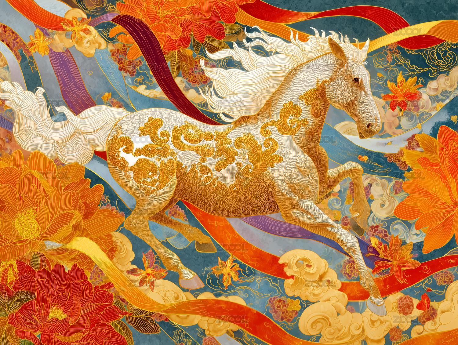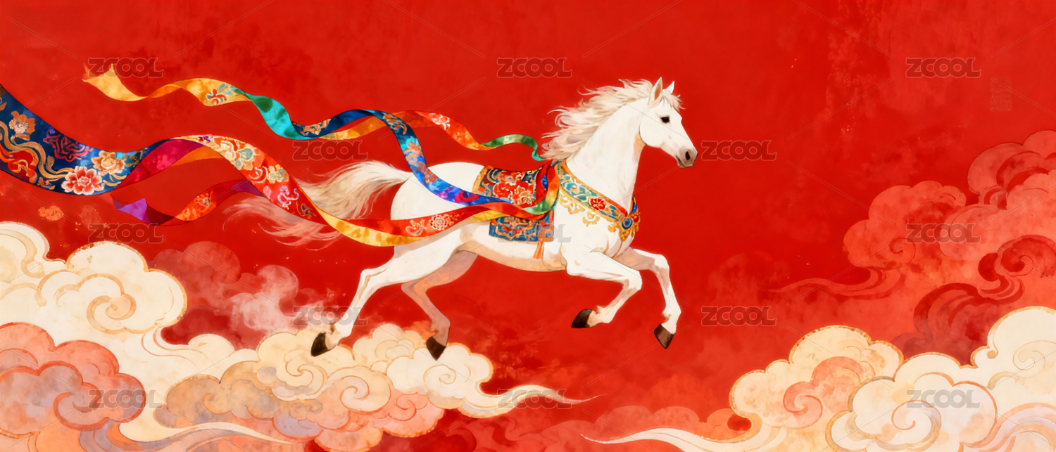 粉色,云海,云雾,背景,商务,古建筑,奔跑,白色,骏马,蓝色