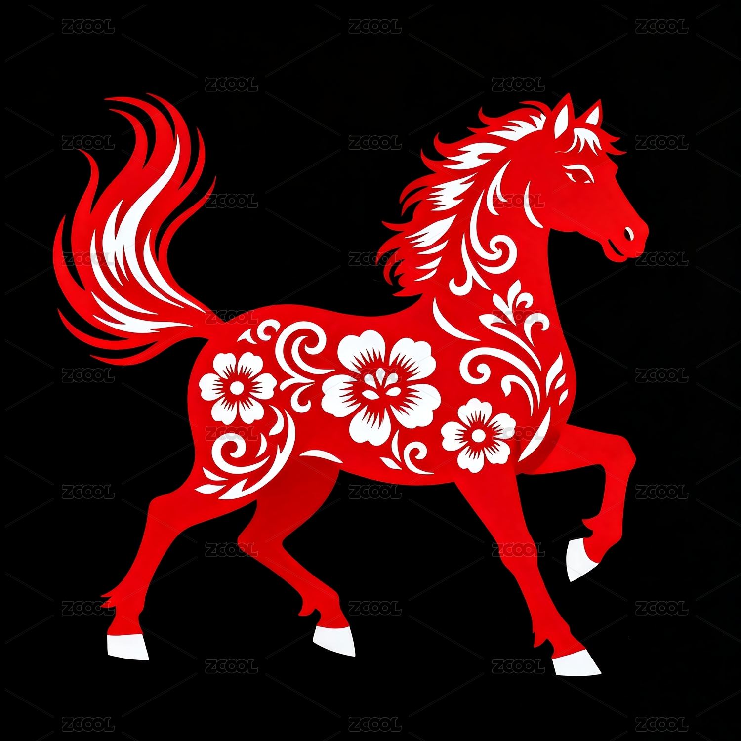 马,红色,花纹,图案,背景,传统,装饰,工艺,剪纸,艺术