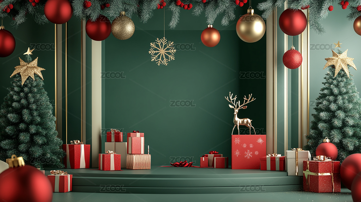 圣诞节超精致麋鹿礼盒圣诞树温馨插画场景