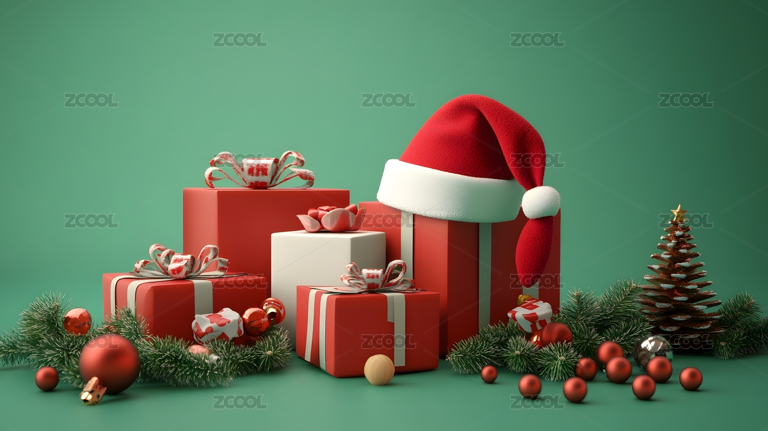 装饰,红色,金色,节日,礼物,绿色,蝴蝶结,松果,雪人,鹿