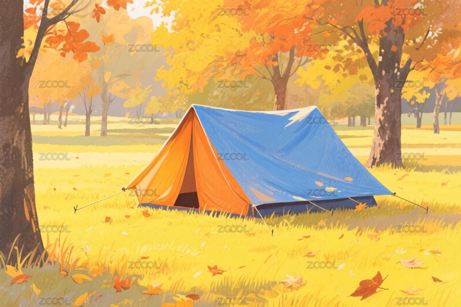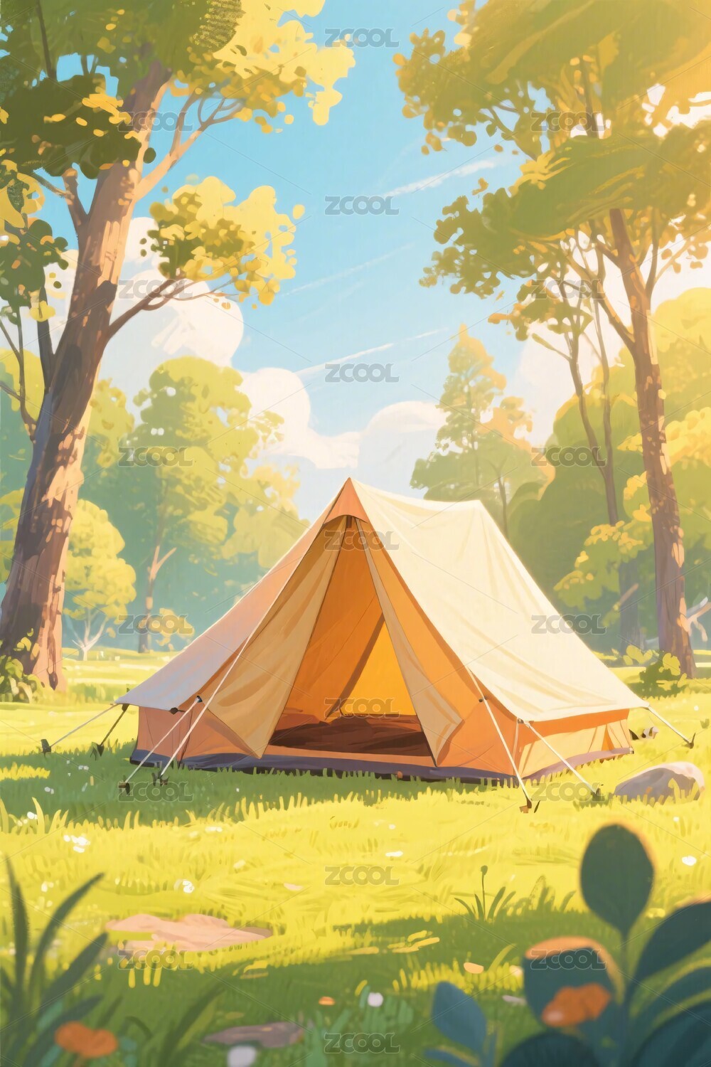 帐篷,树林,草地,公园,户外,露营,插画,自然,自然环境,阳光