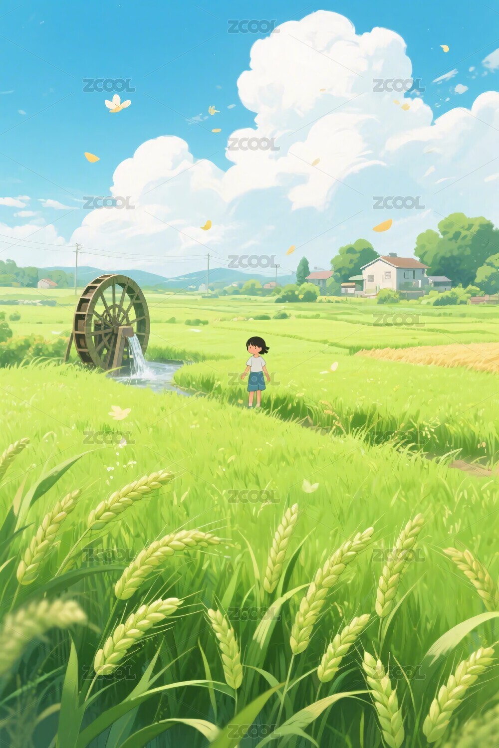 田园水车风景场景