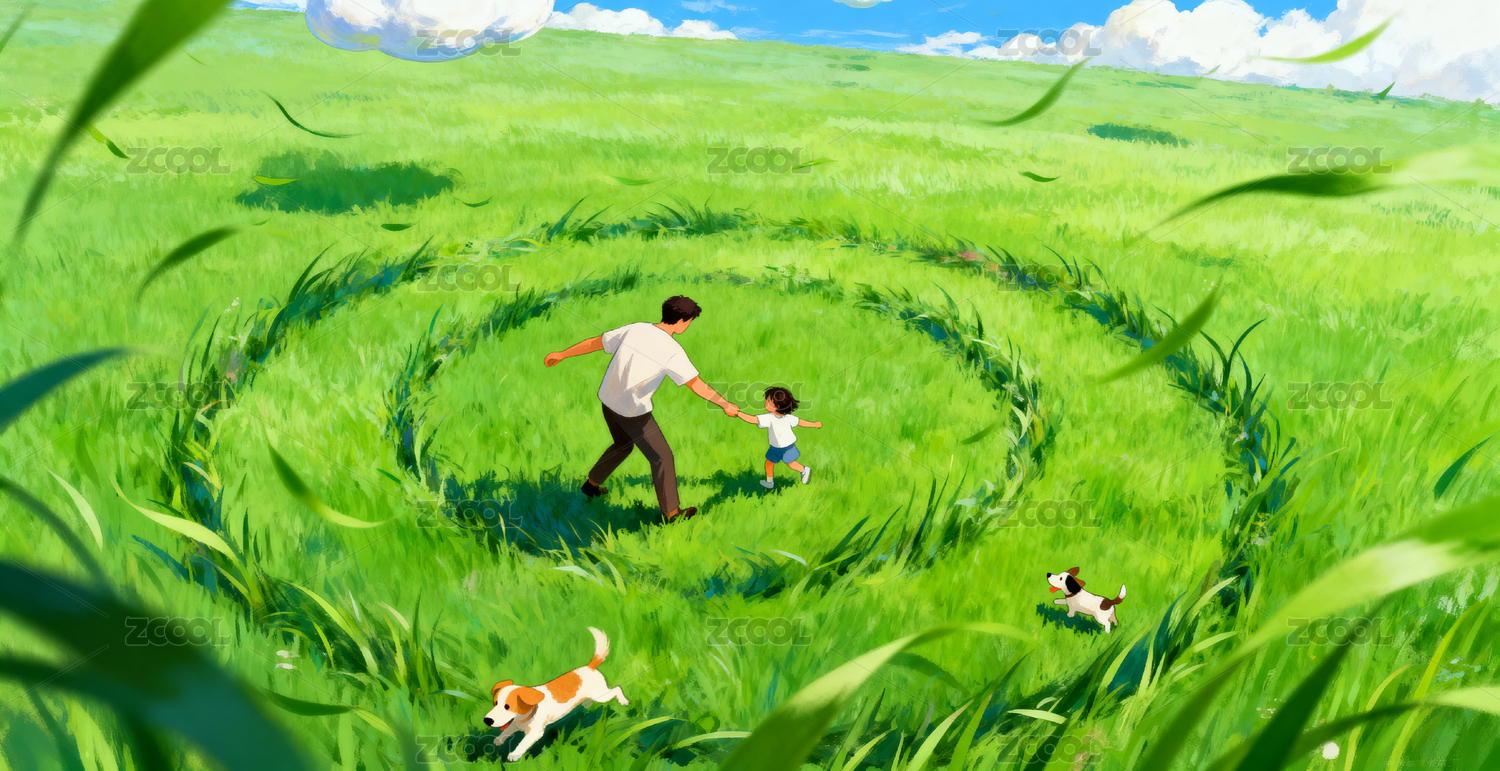 草地亲子与宠物