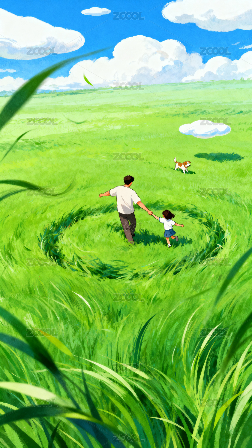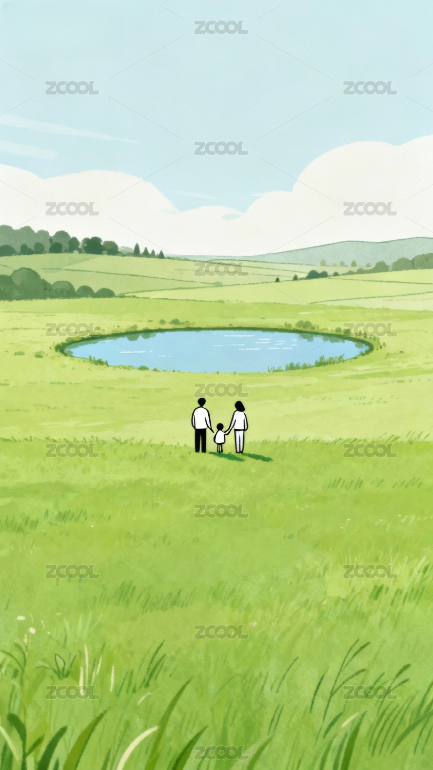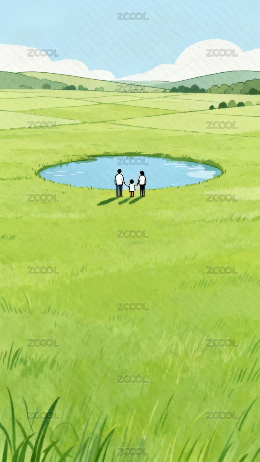 清新治愈草原卡通插画