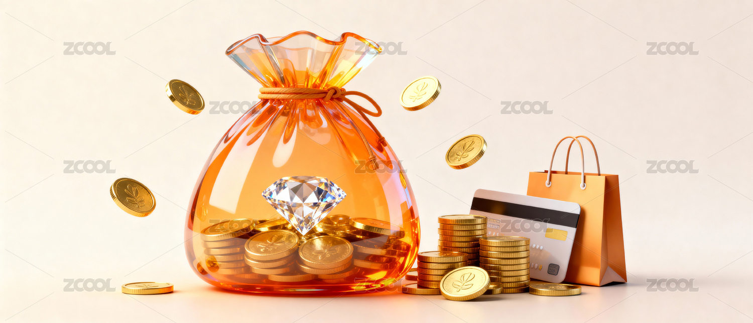 财富,钱袋,钻石,金币,购物,橙色,装饰,散落,袋子,信用