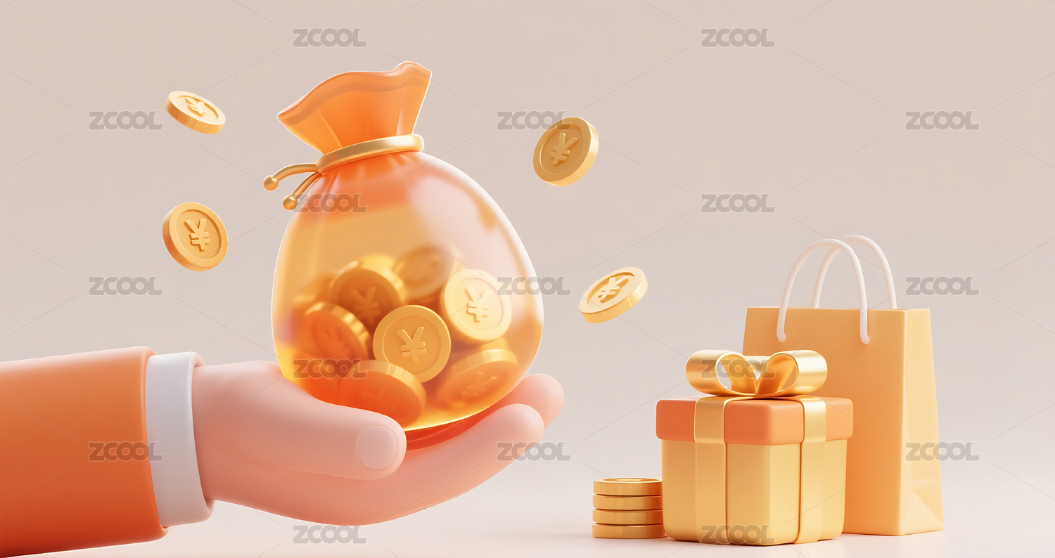 福袋,财富,元宝,金币,金融,消费,理财,橙色,招财,促销