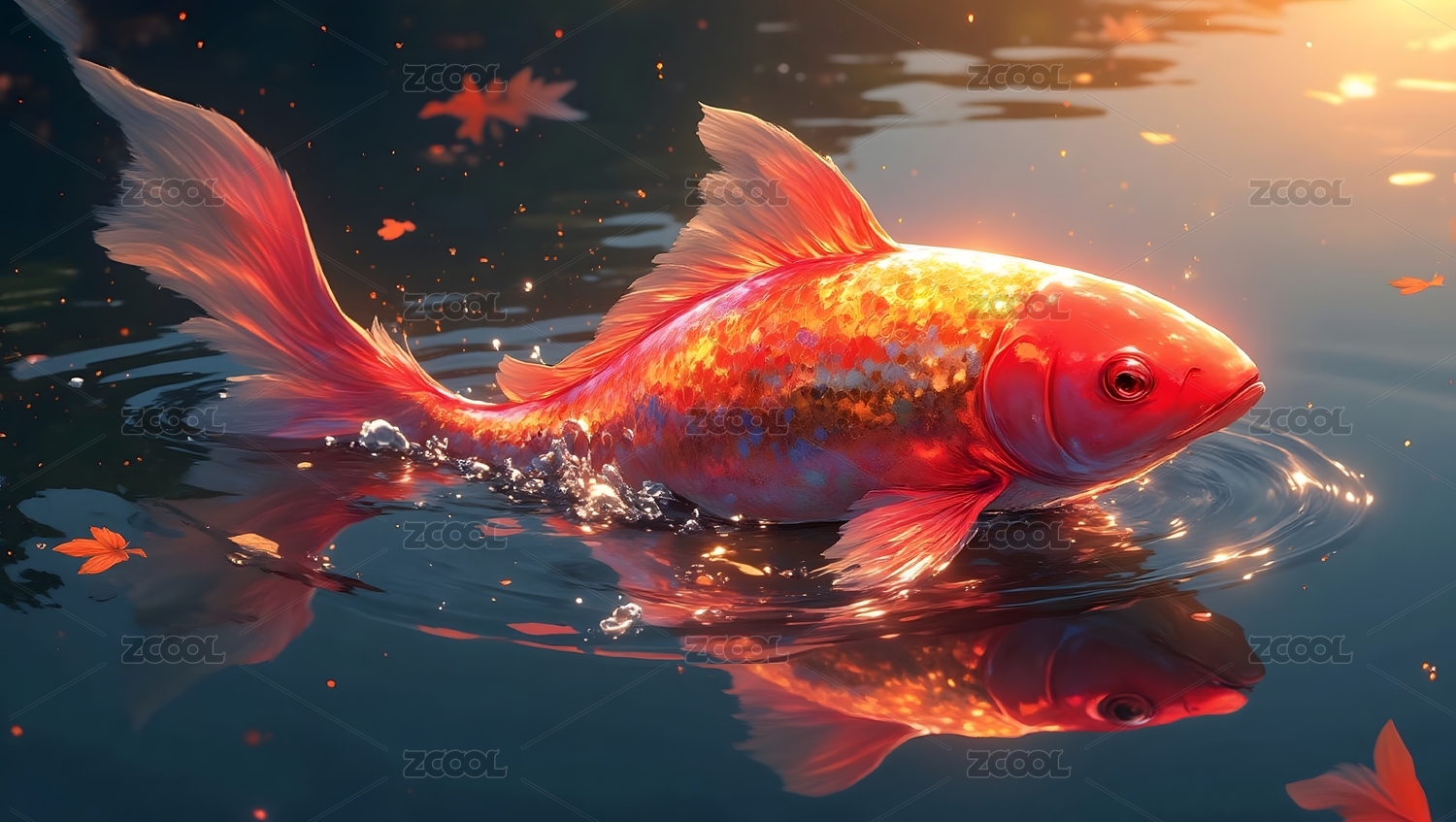 金鱼,红色,水中,游动,气泡,水草,水族,观赏鱼,鱼类,生物
