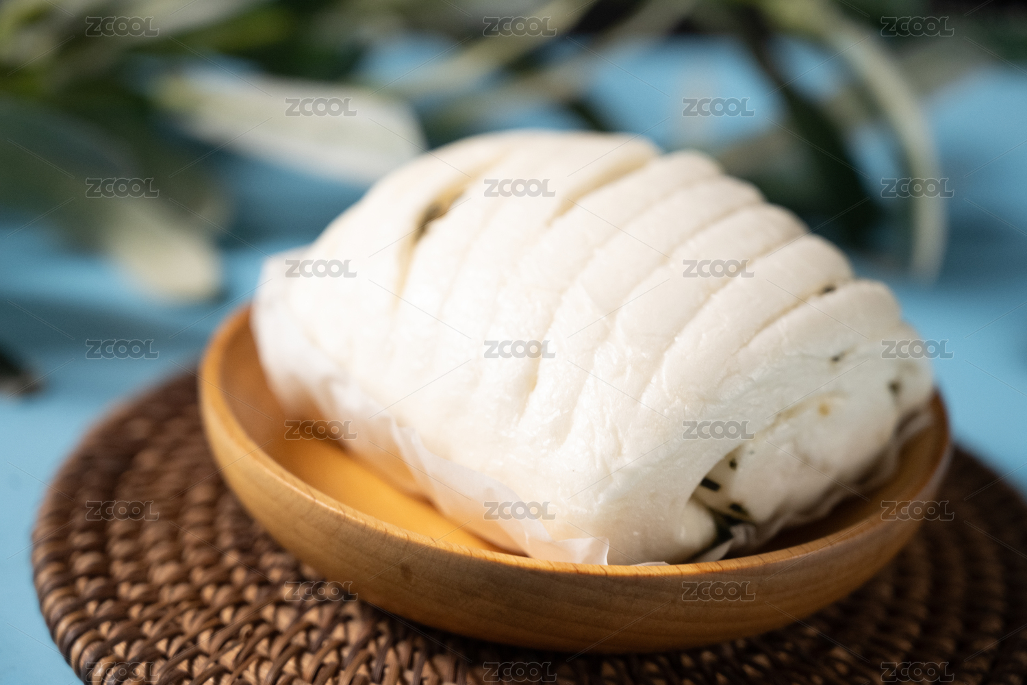 桌面上的盘子里的美味可口的香葱花卷