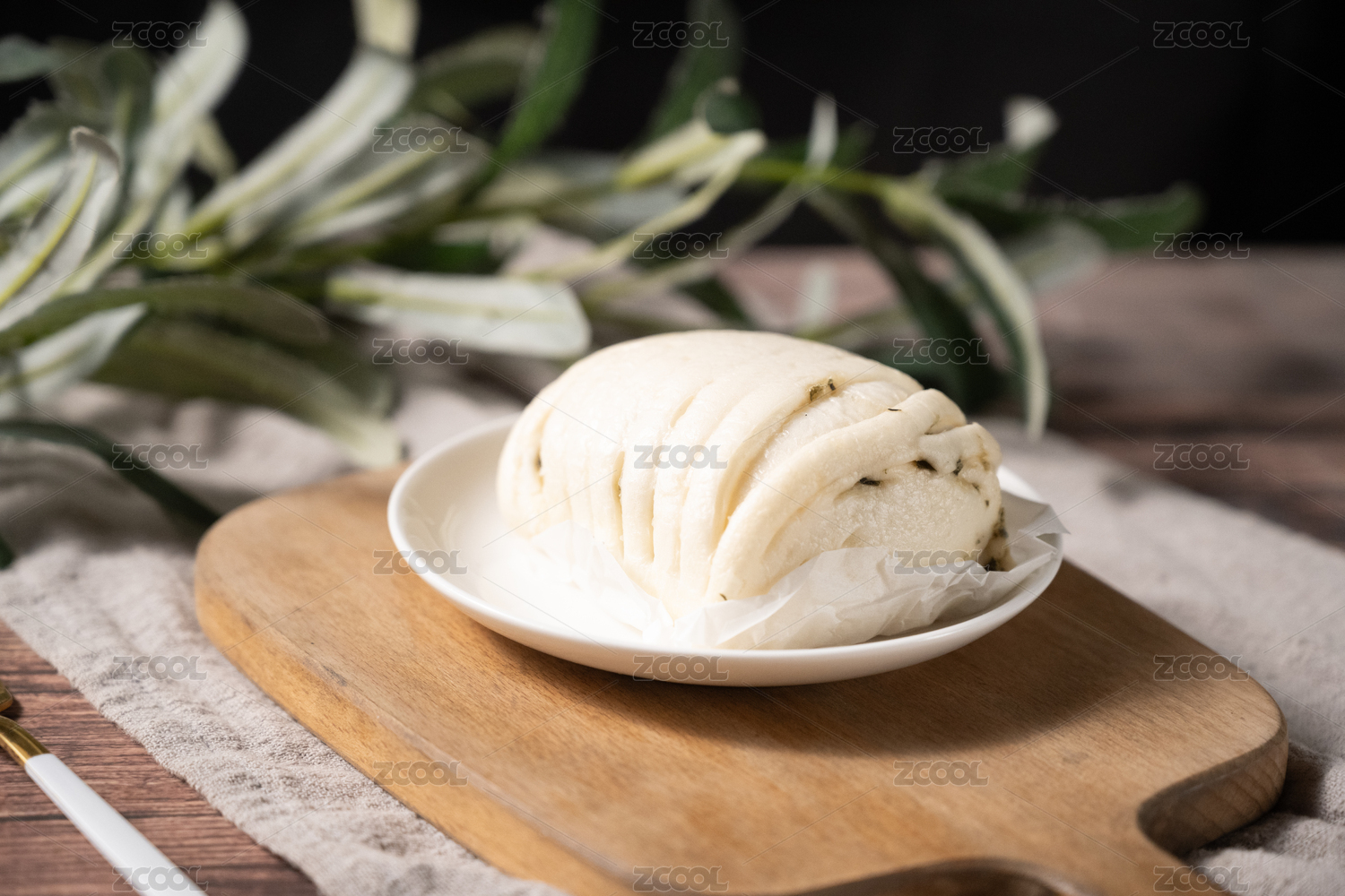 桌面上的盘子里的美味可口的香葱花卷