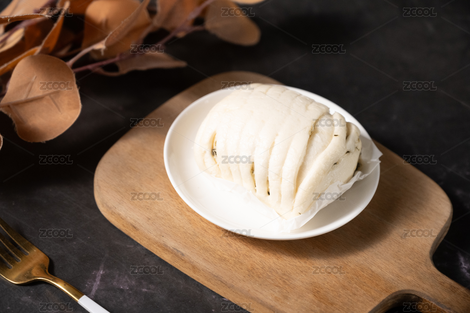 桌面上的盘子里的美味可口的香葱花卷