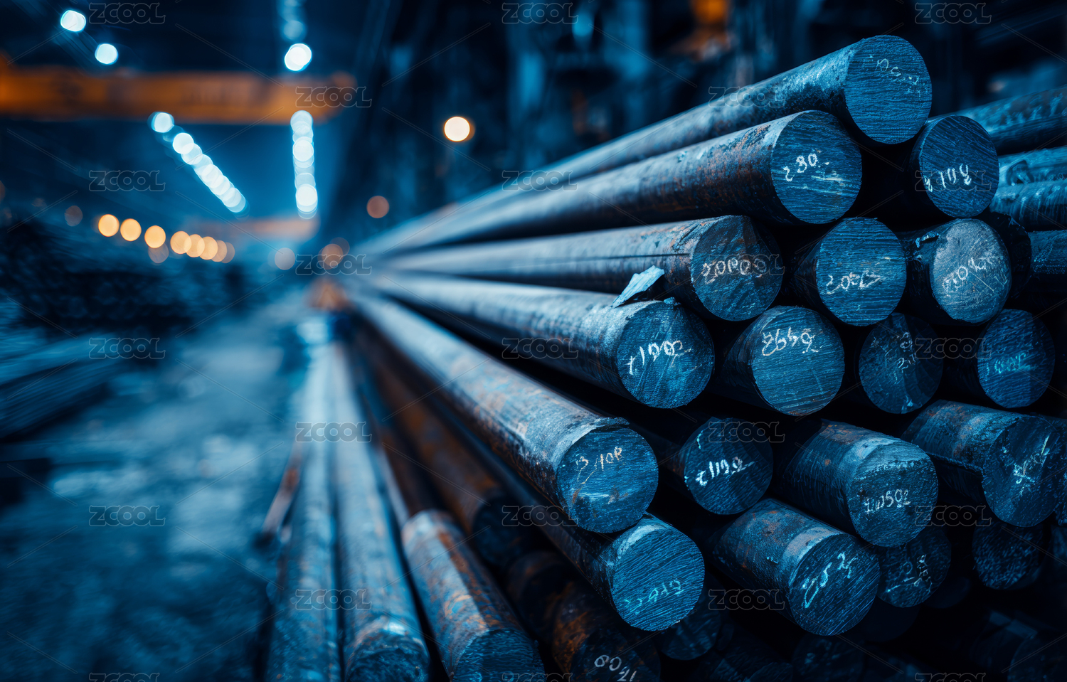 工厂仓库中的钢筋堆放场景
