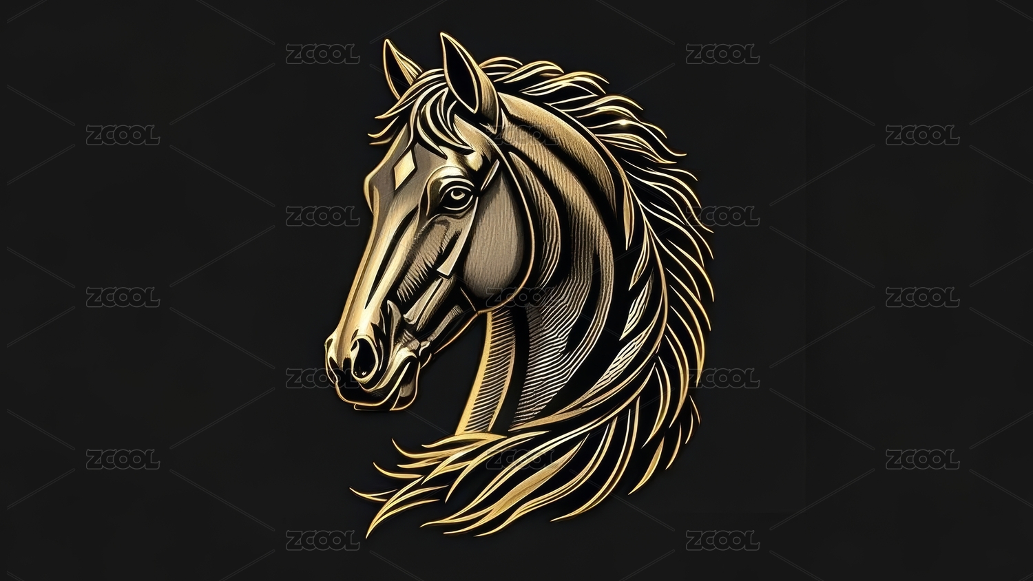 金色,马头,抽象,图案,艺术,设计,创意,造型,流畅,线条