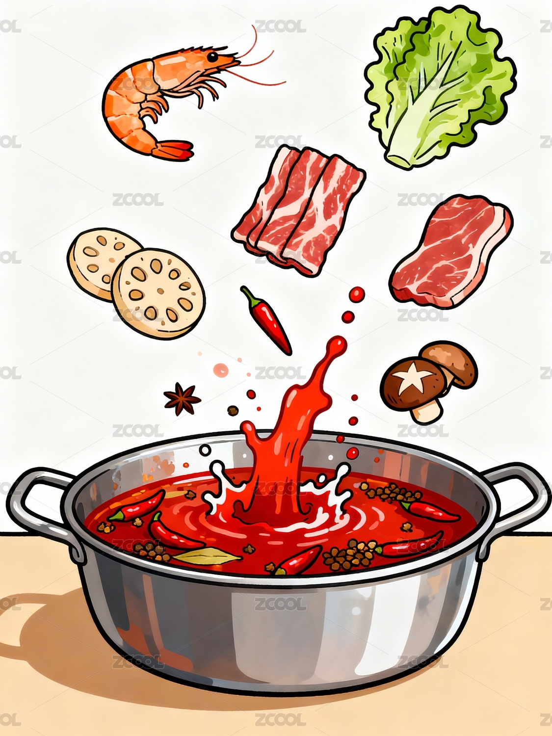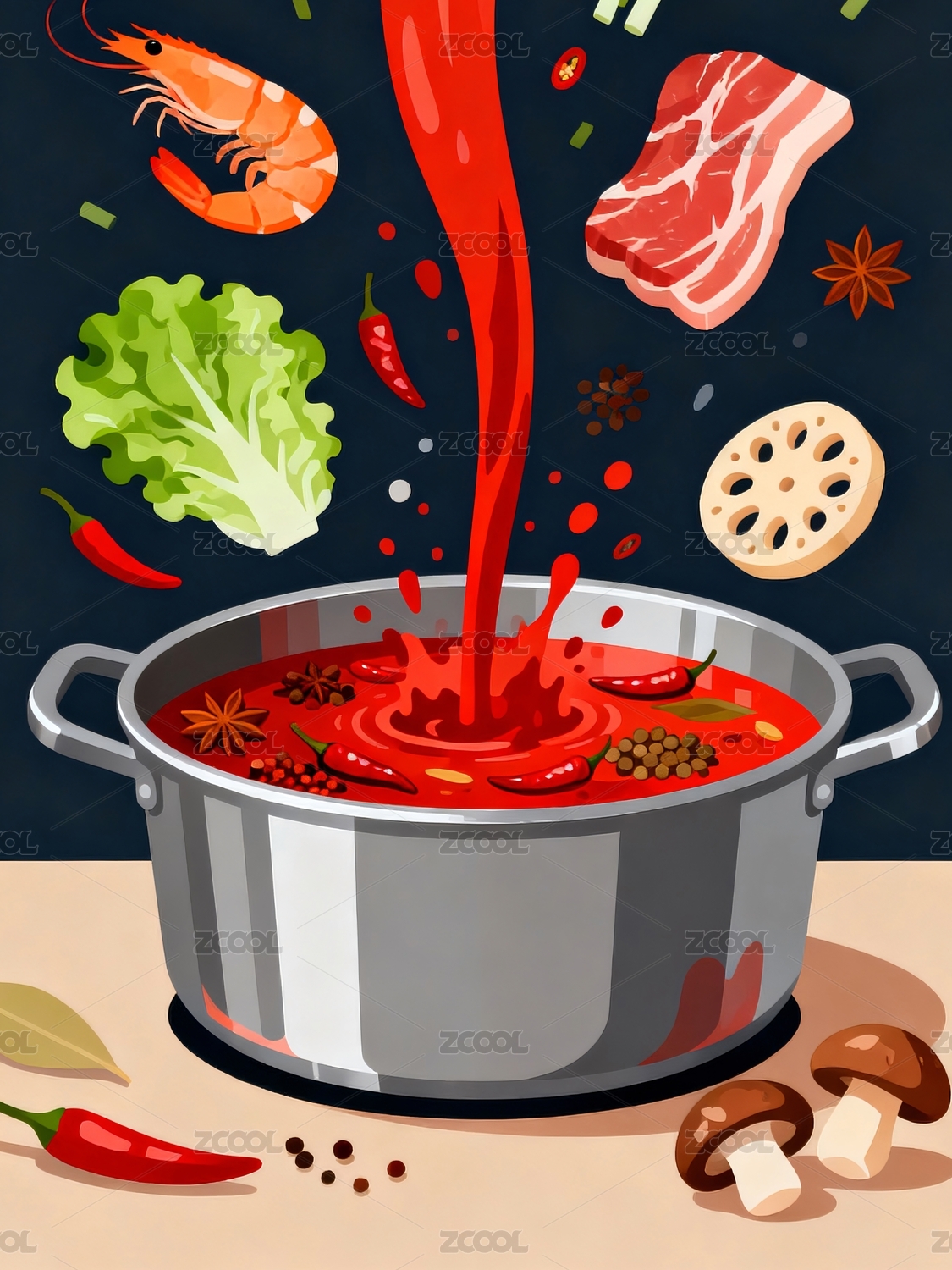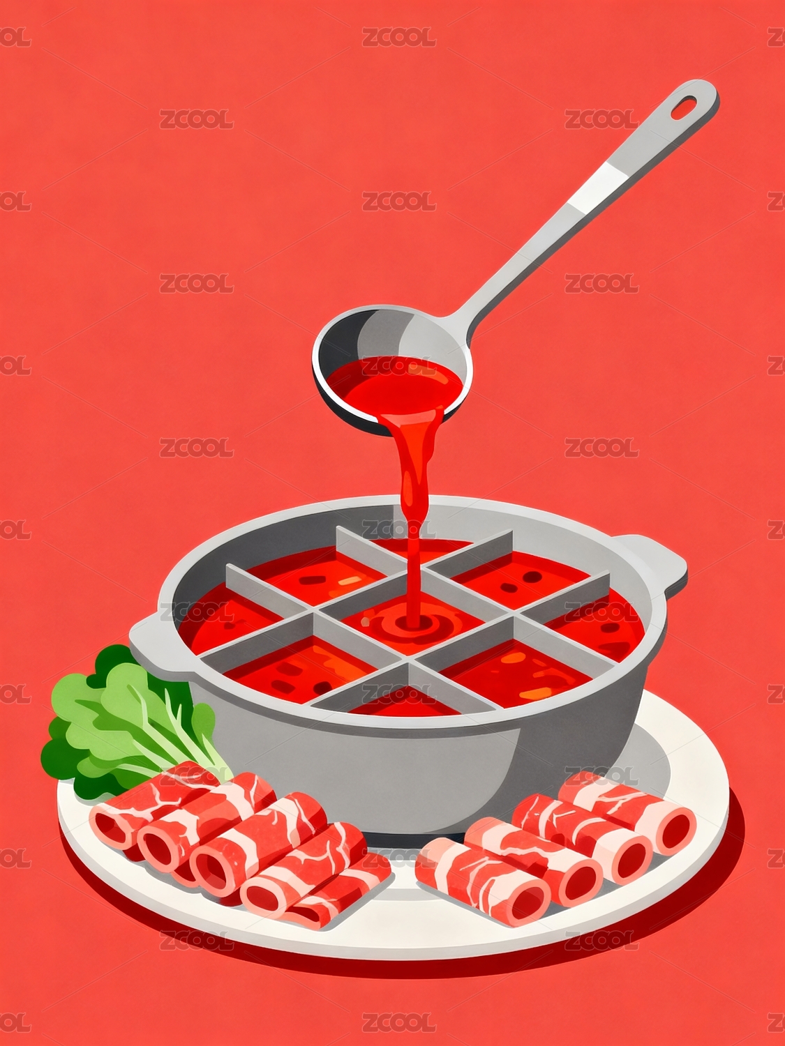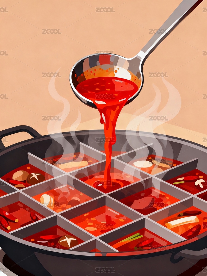 勺子,食物,汤汁,烹饪,火锅,汤底,热气,辣椒,锅具,食材
