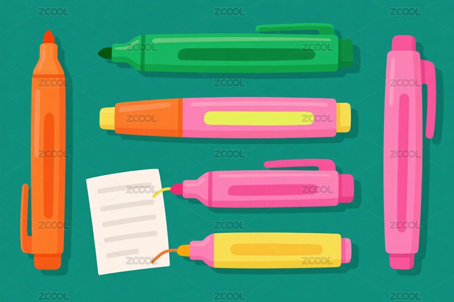彩色笔与便签的插画