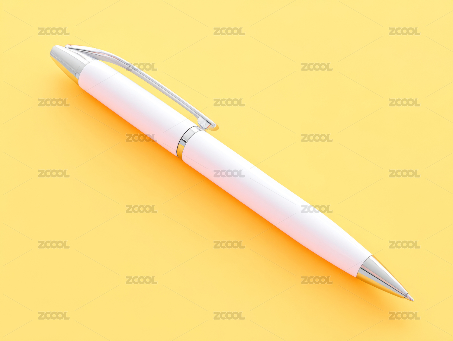 简约白色笔在黄色背景