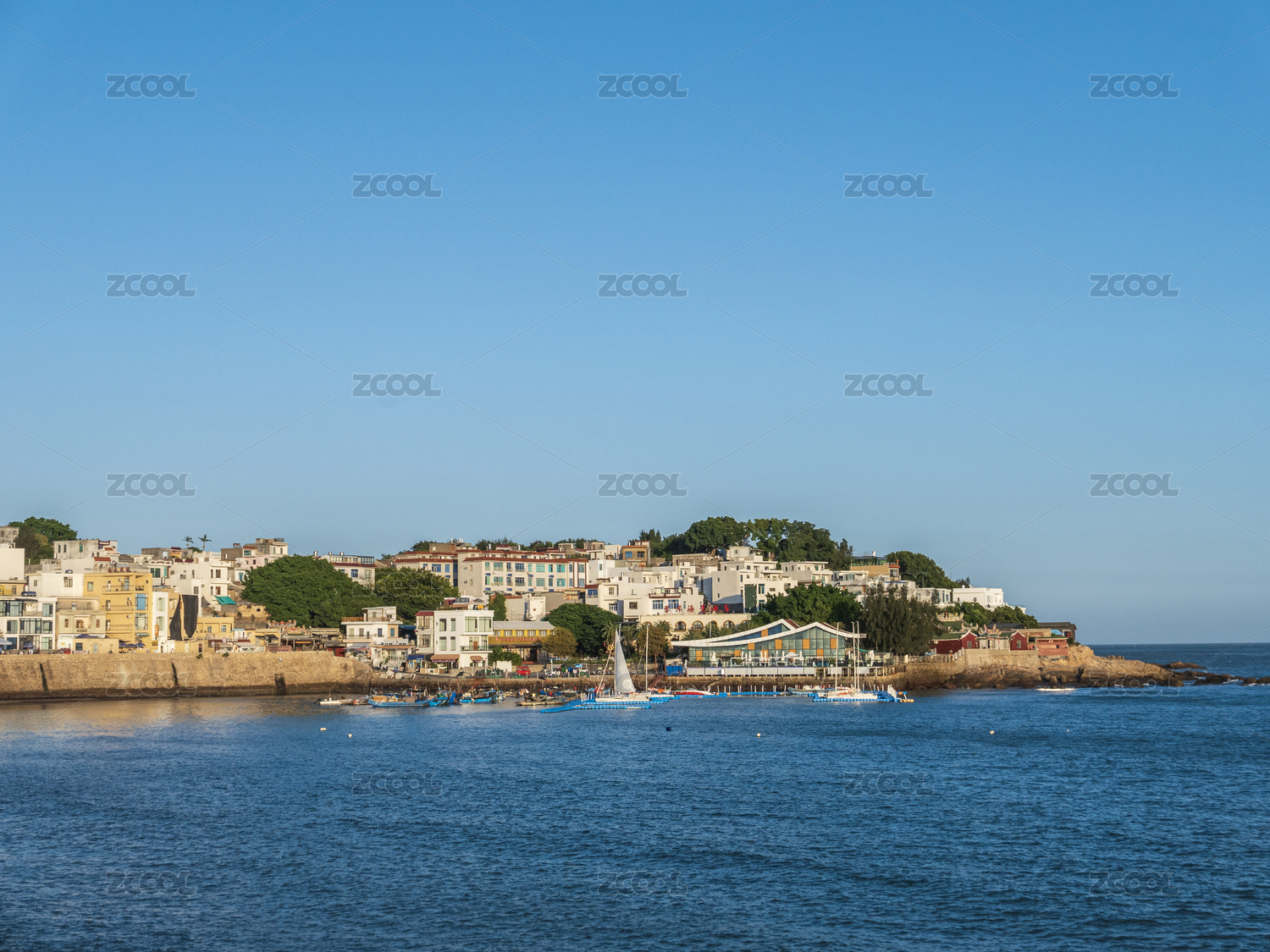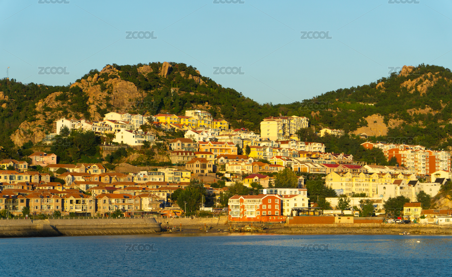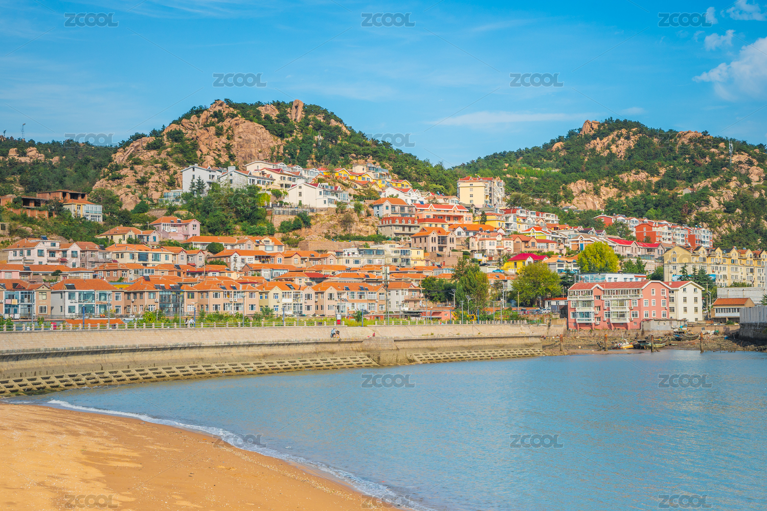 青岛沙子口广场海滨风景