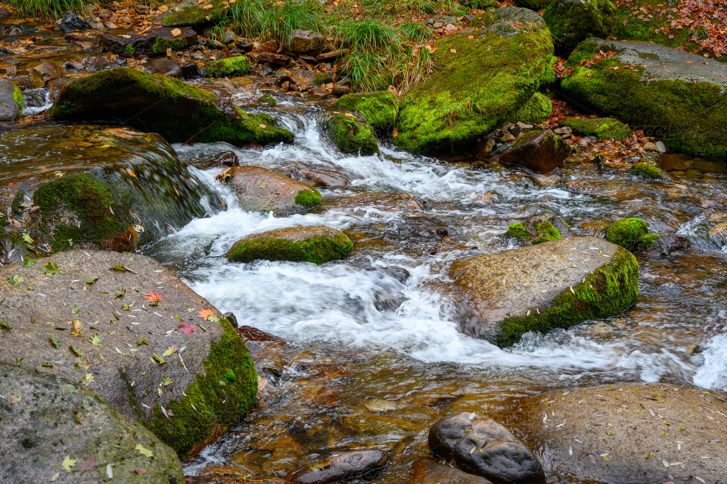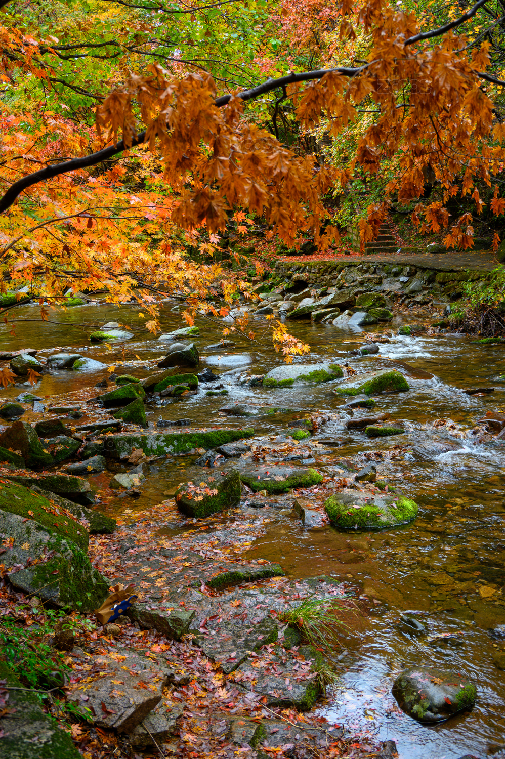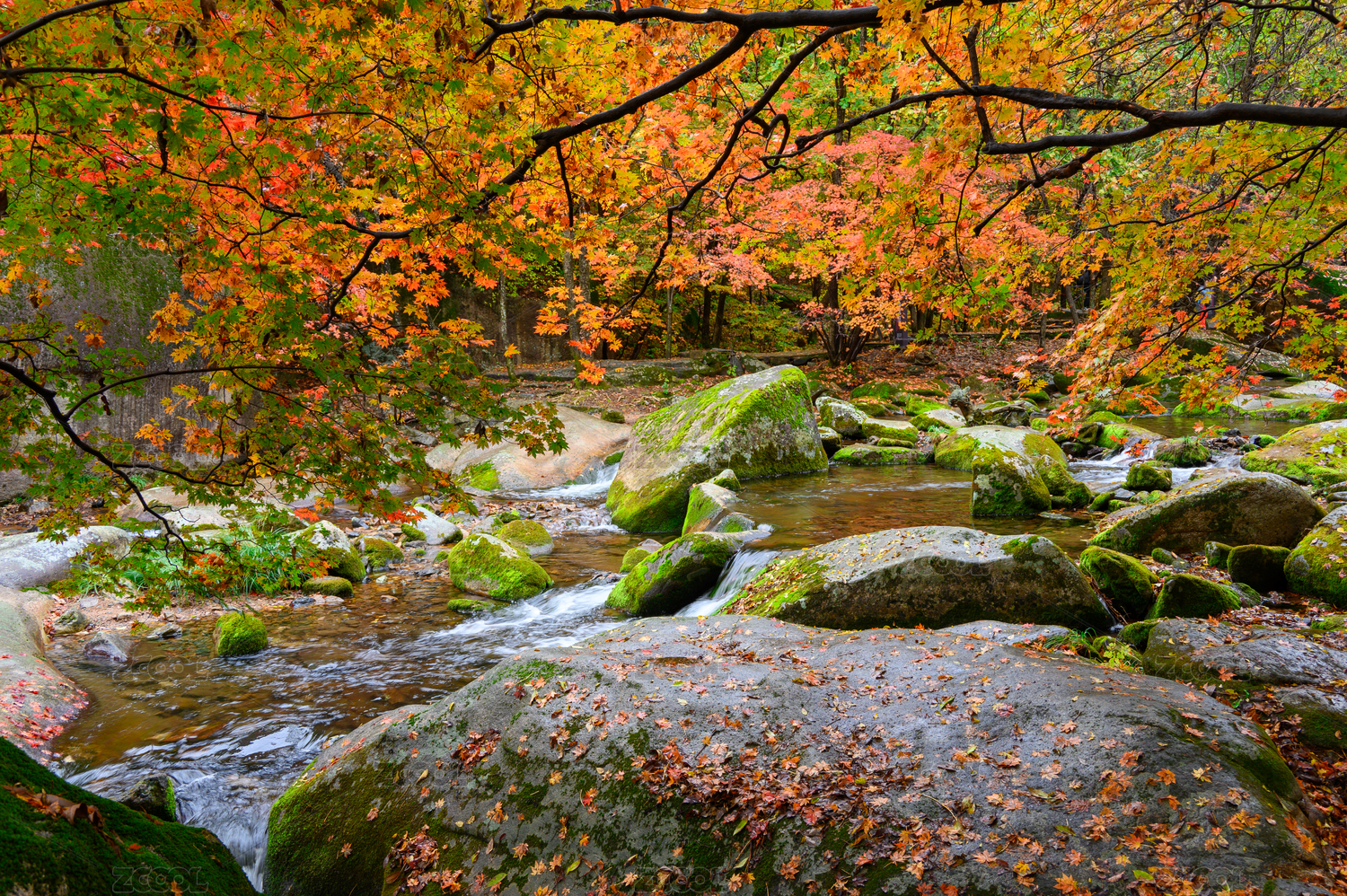 秋天,红叶,枫叶,溪流,流水,河流,石头,青苔,苔藓,秋季