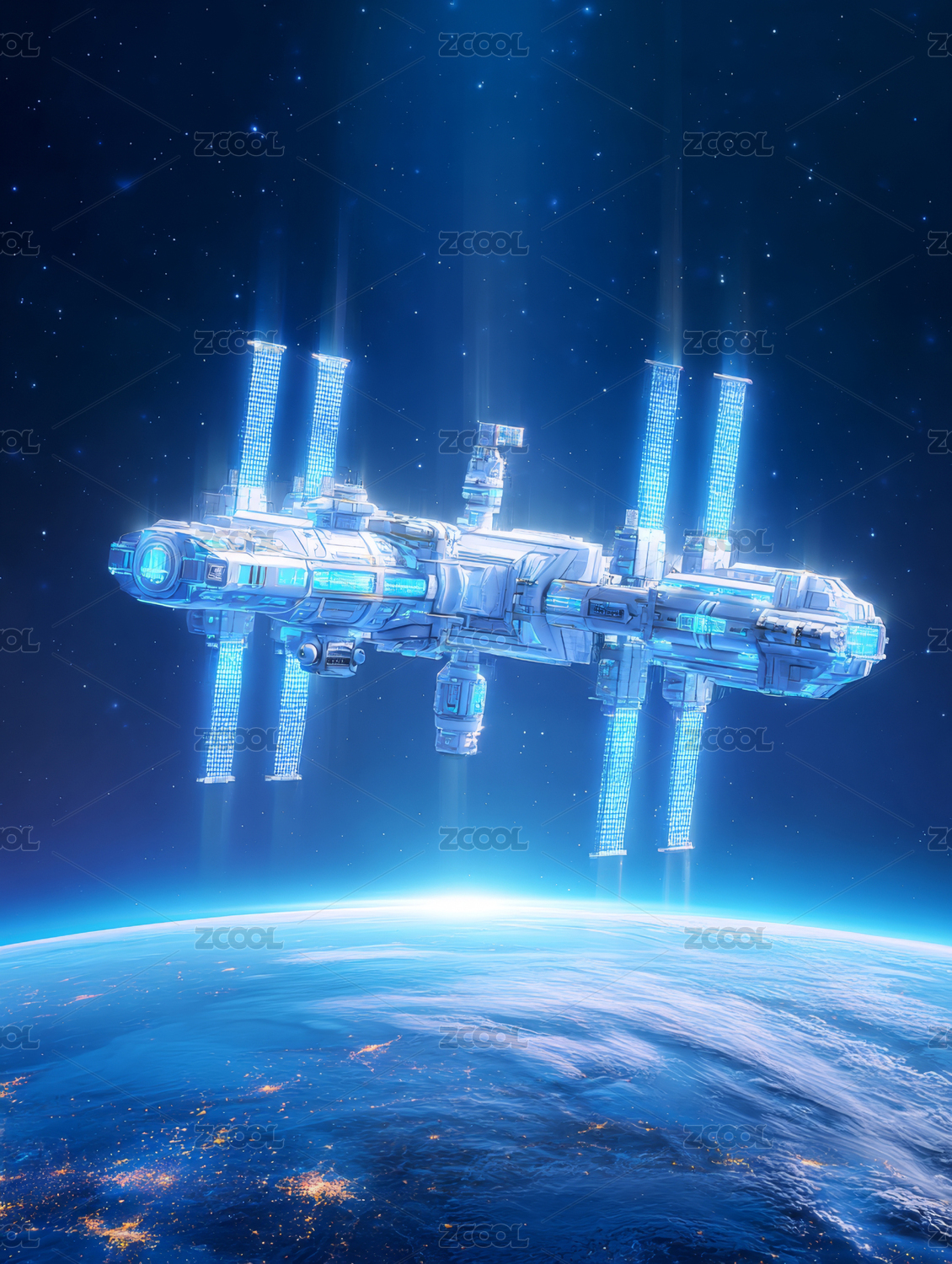 空间站,太空,地球,科技,宇宙,卫星,蓝色,光效,航天器,星际