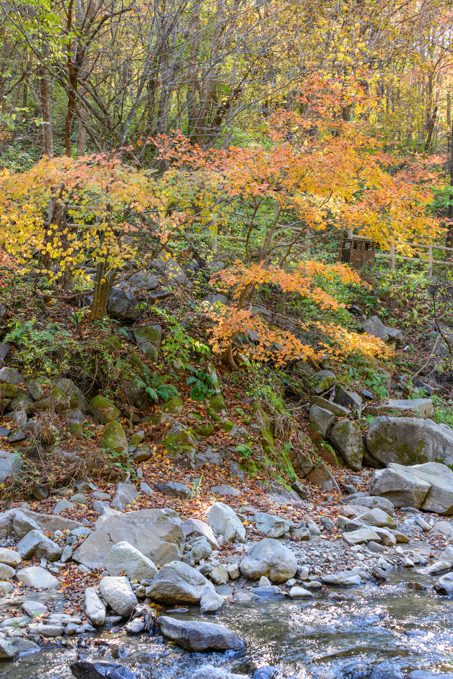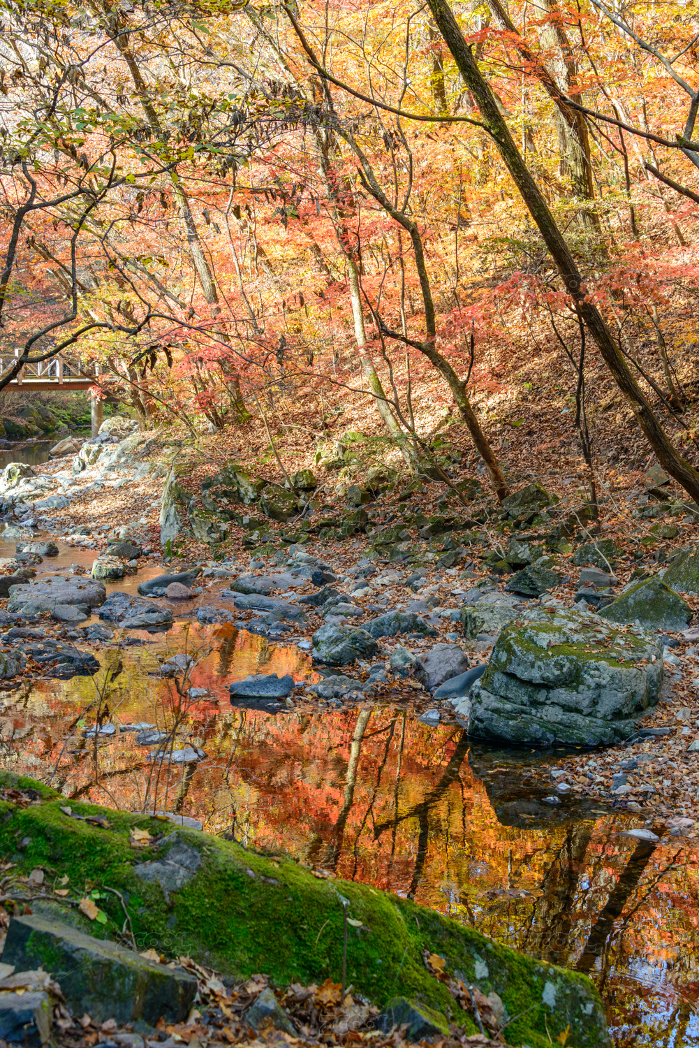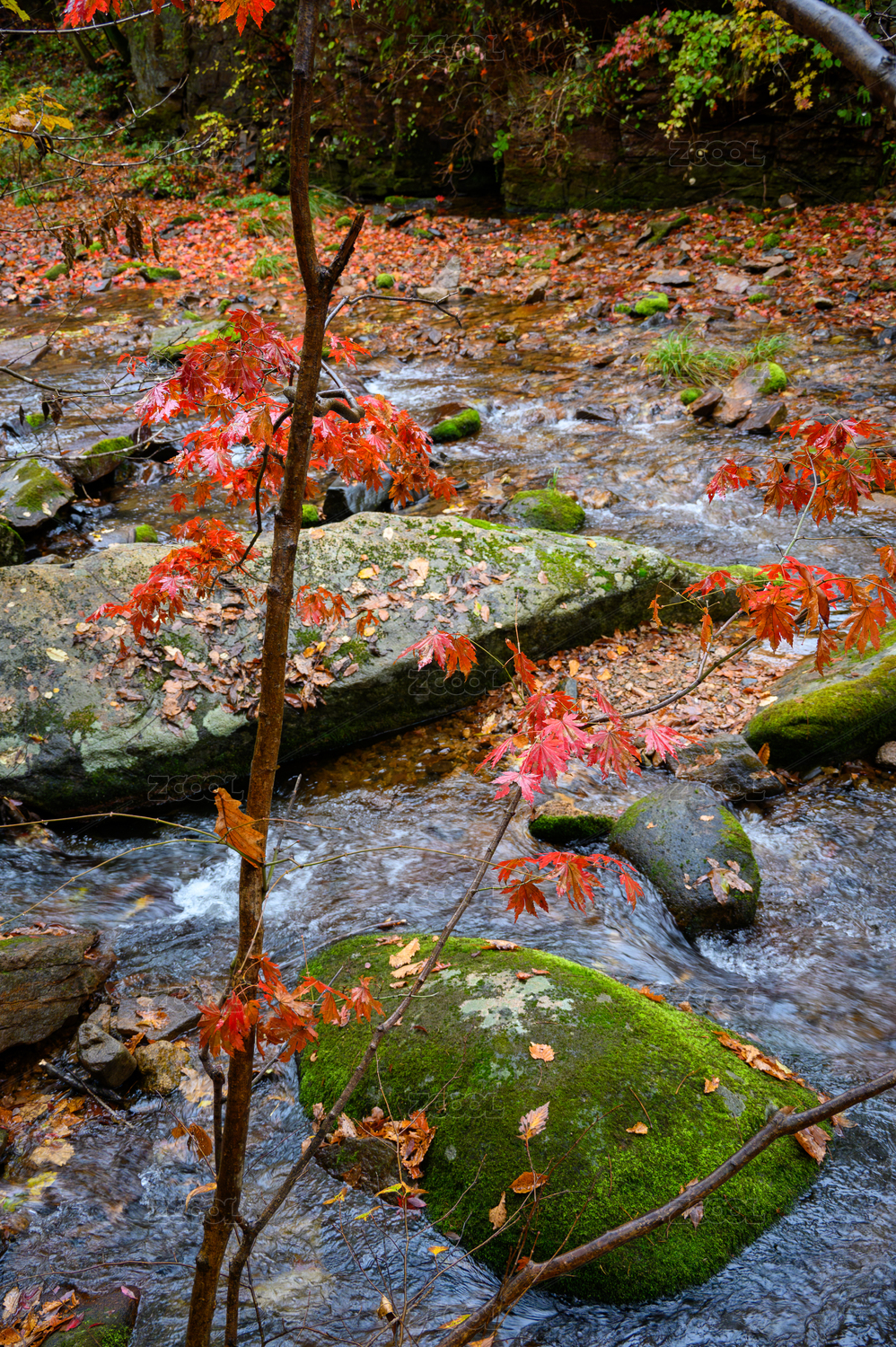 秋天,红叶,枫叶,溪流,流水,河流,石头,青苔,苔藓,秋季