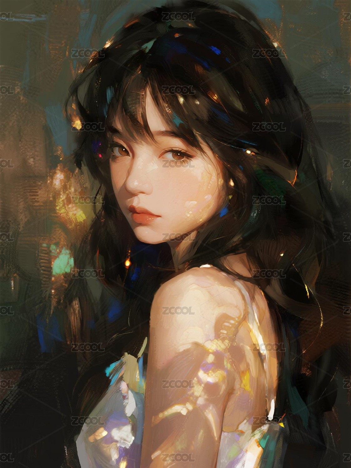 回眸的长发女孩