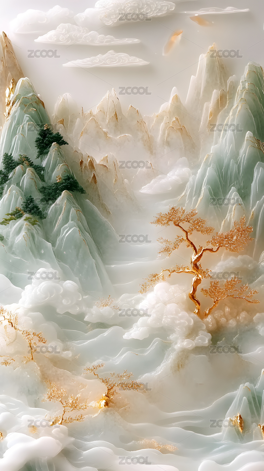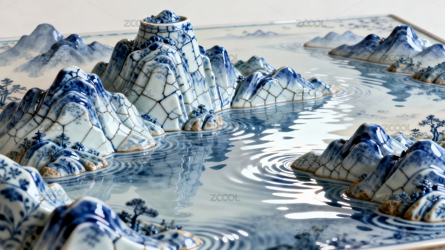 主视觉,商业,壁纸,创意,山水,盆景,中式,景观,陶瓷,纹路