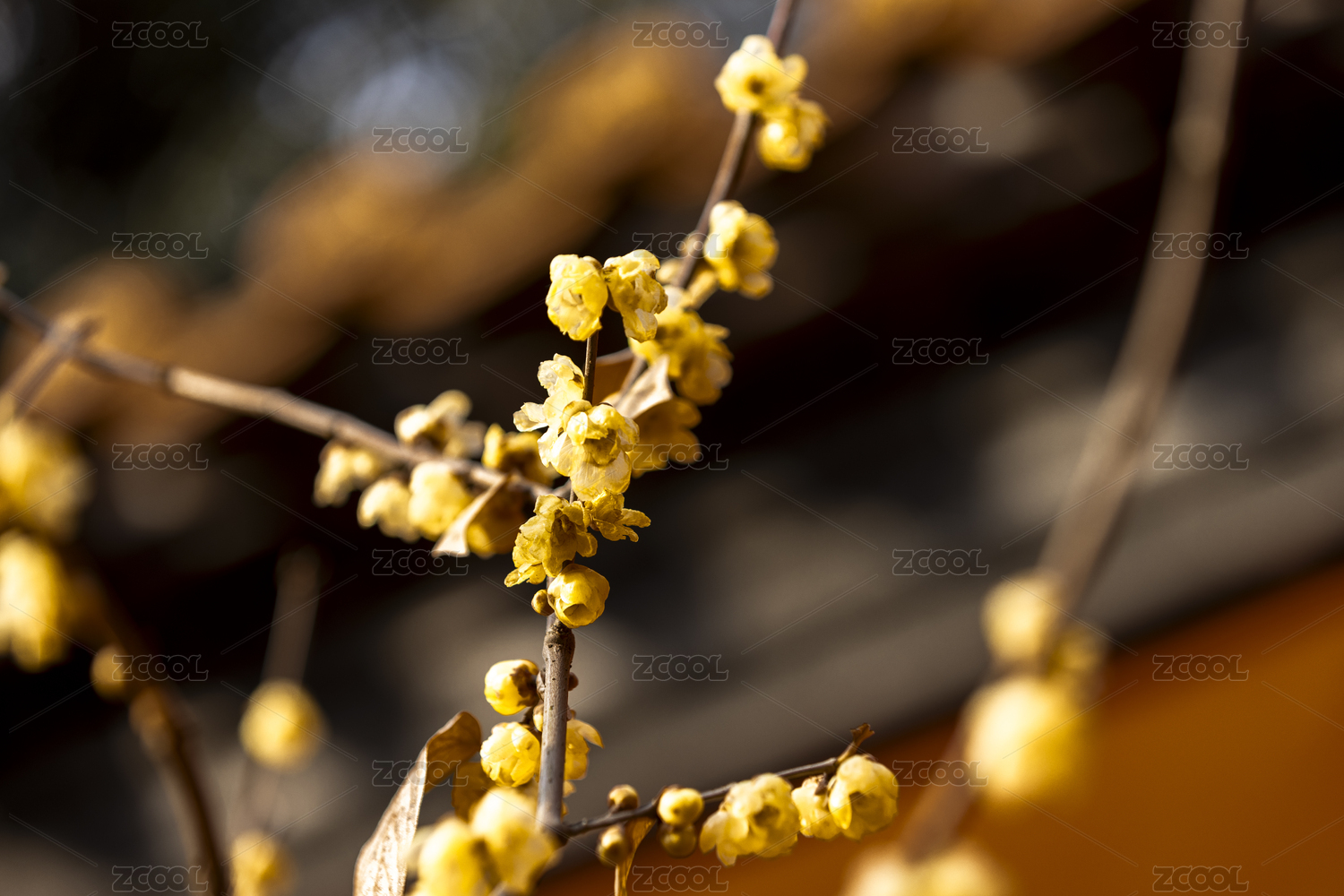 腊梅,红墙,黄色腊梅,梅花,宫墙,春天,花卉,中国风,传统建筑,花枝