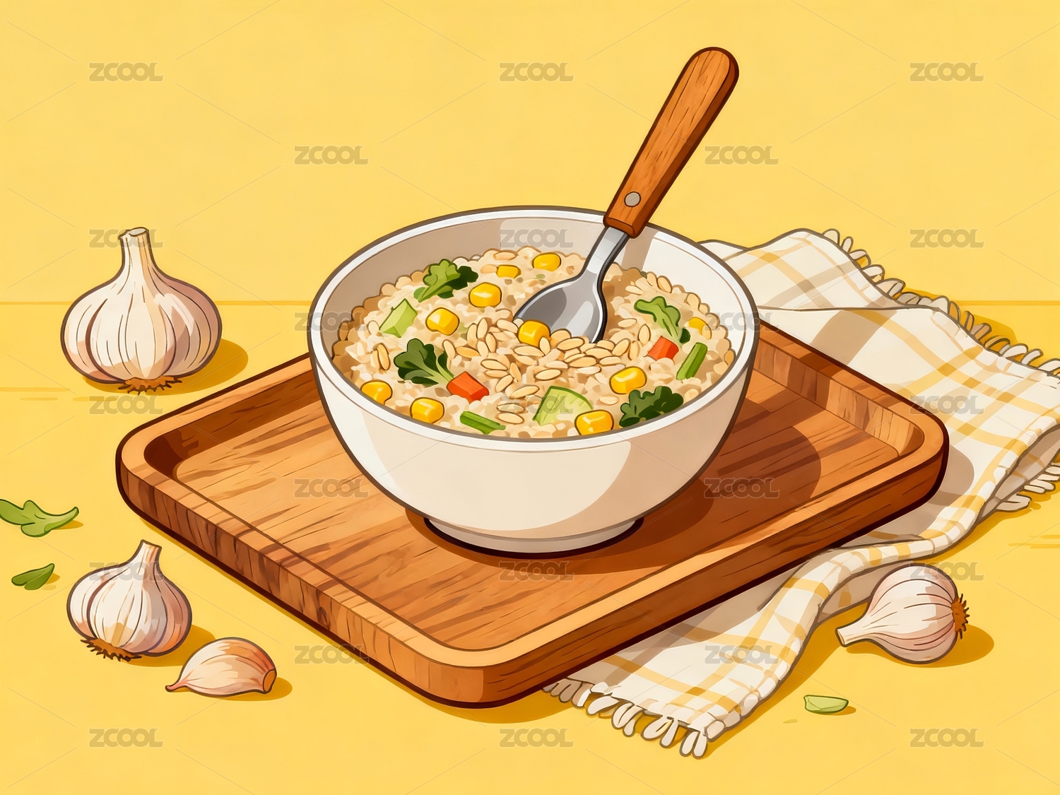 勺子,食材,菜品,盘子,食物,绿色,白色,黄色,颗粒,餐桌
