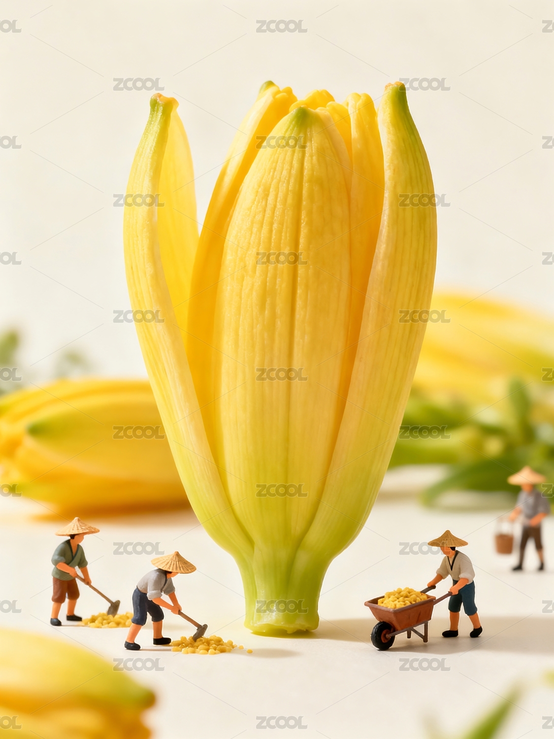 花朵微缩人物劳动