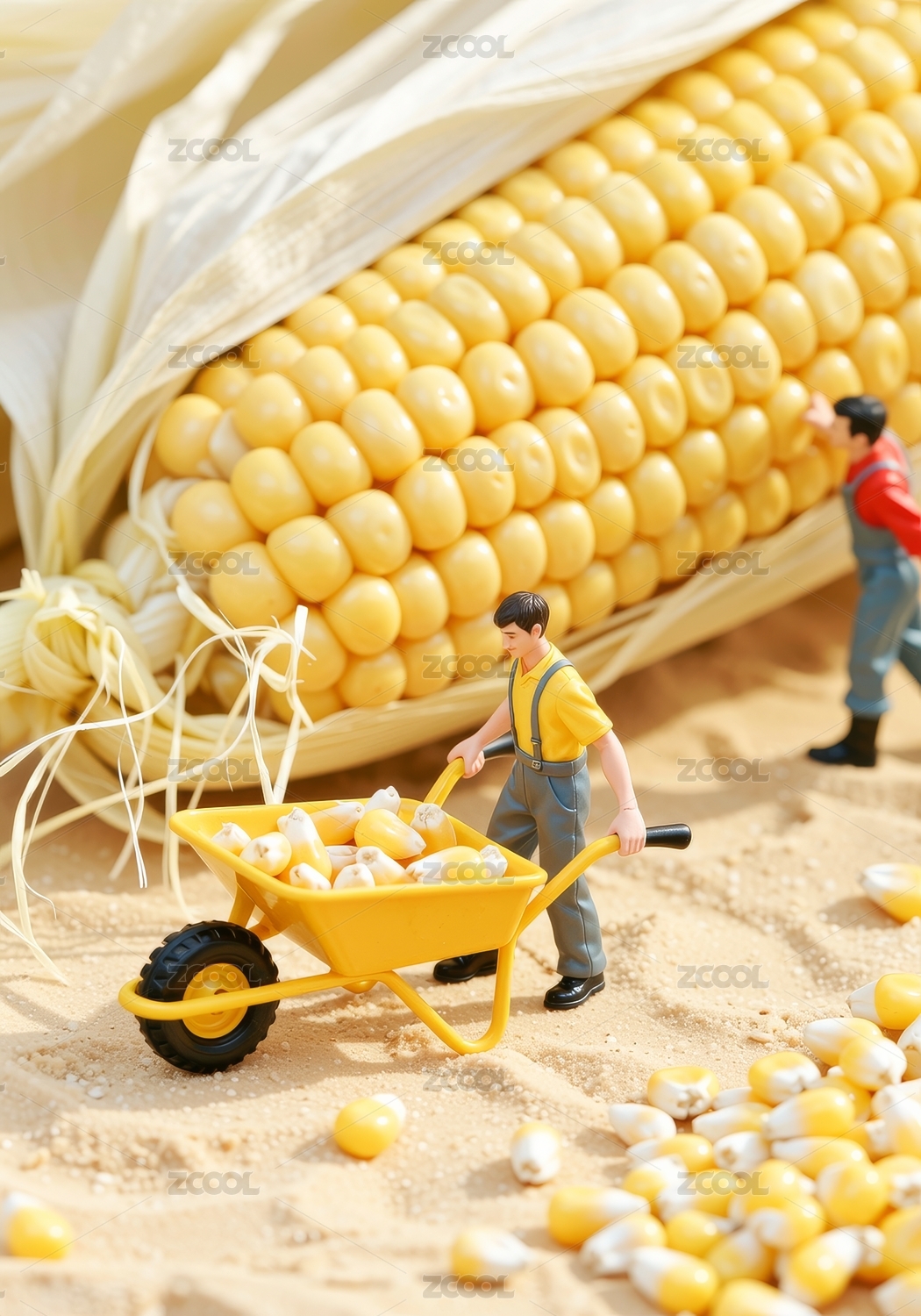 玉米与微型人物劳作