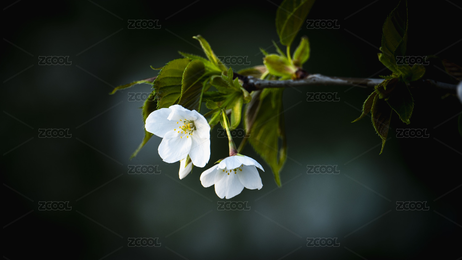 春暖花开,绽放的白色花瓣的东京樱花特写