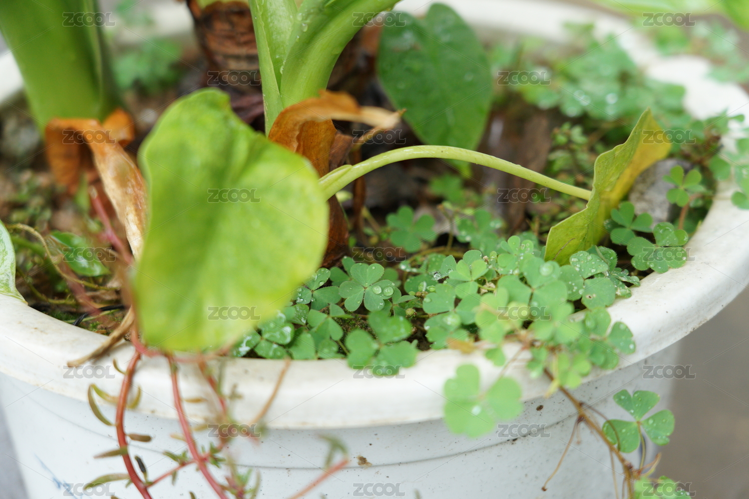 早晨阳光里,铜钱草绿色植物自然清新背景