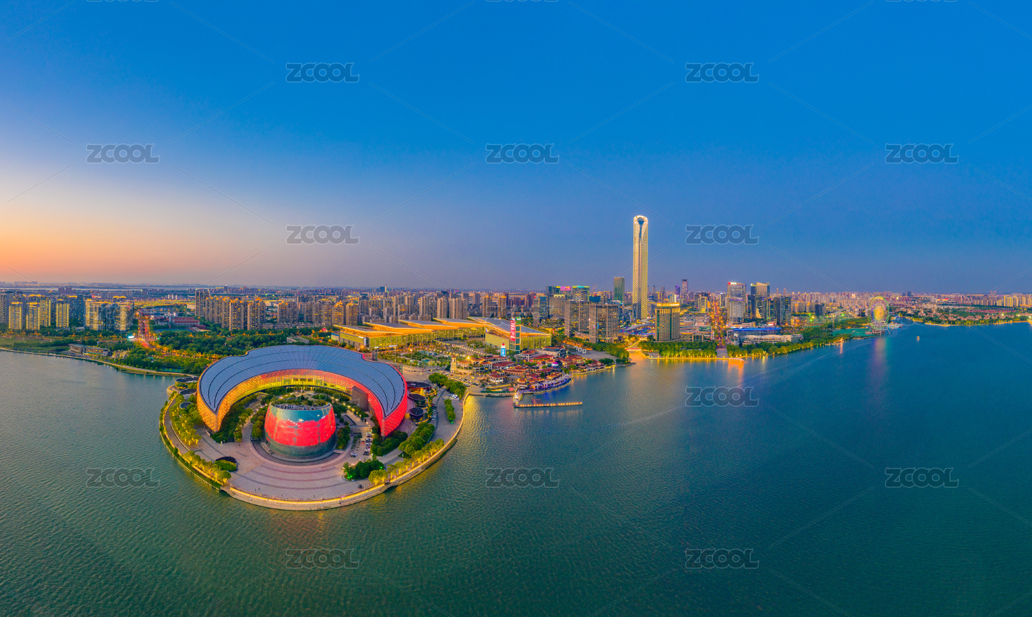 苏州市,工业园区,湖东,商业中心,CBD,建筑群,国金中心,国际博览中心,月光码头,金鸡湖