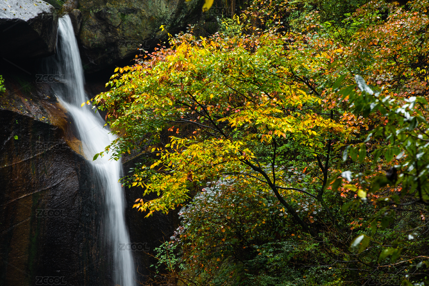 山涧红色枫叶流瀑,中国山东省济南市九如山