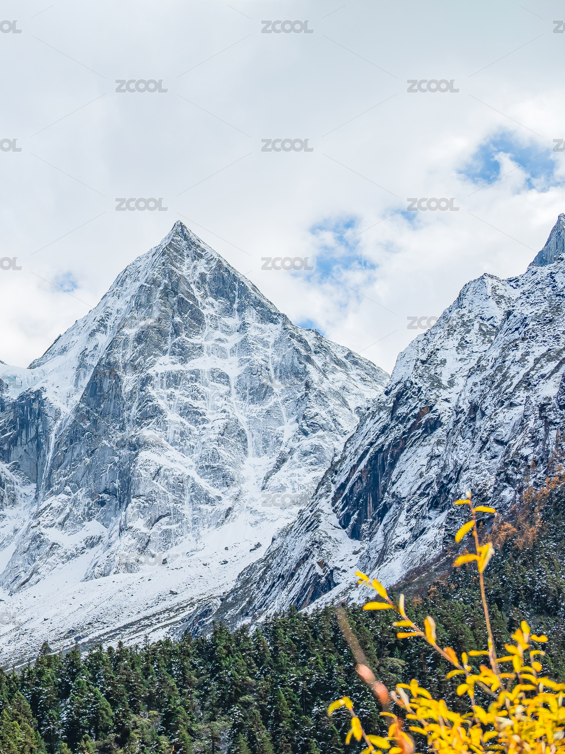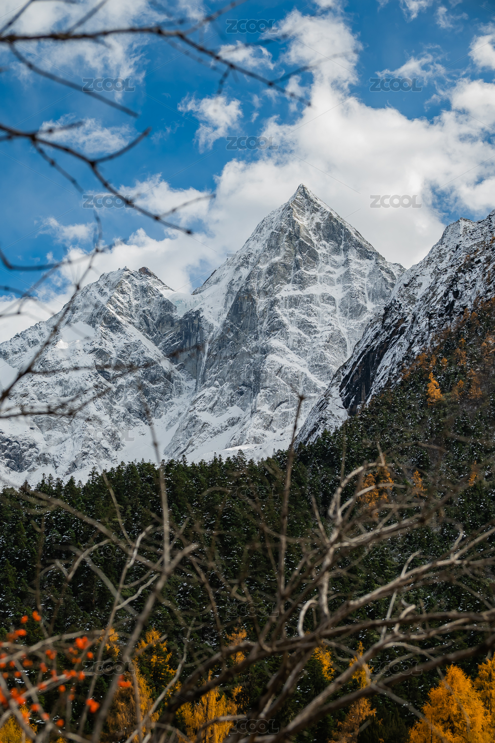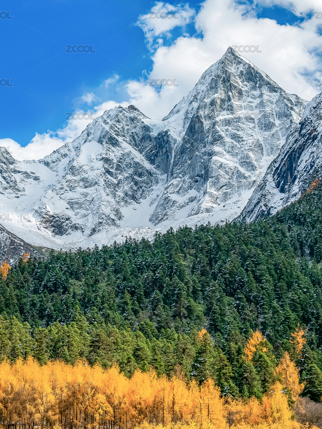 甘孜藏族自治州四姑娘山双桥沟秋季雪山彩林风景