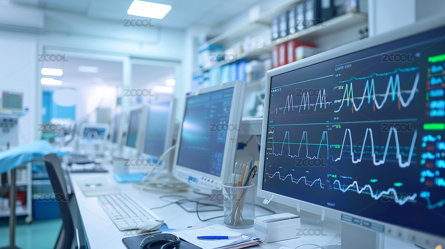 显示屏,监控,设备,现代,蓝色,走廊,医疗,专业,科技,白色