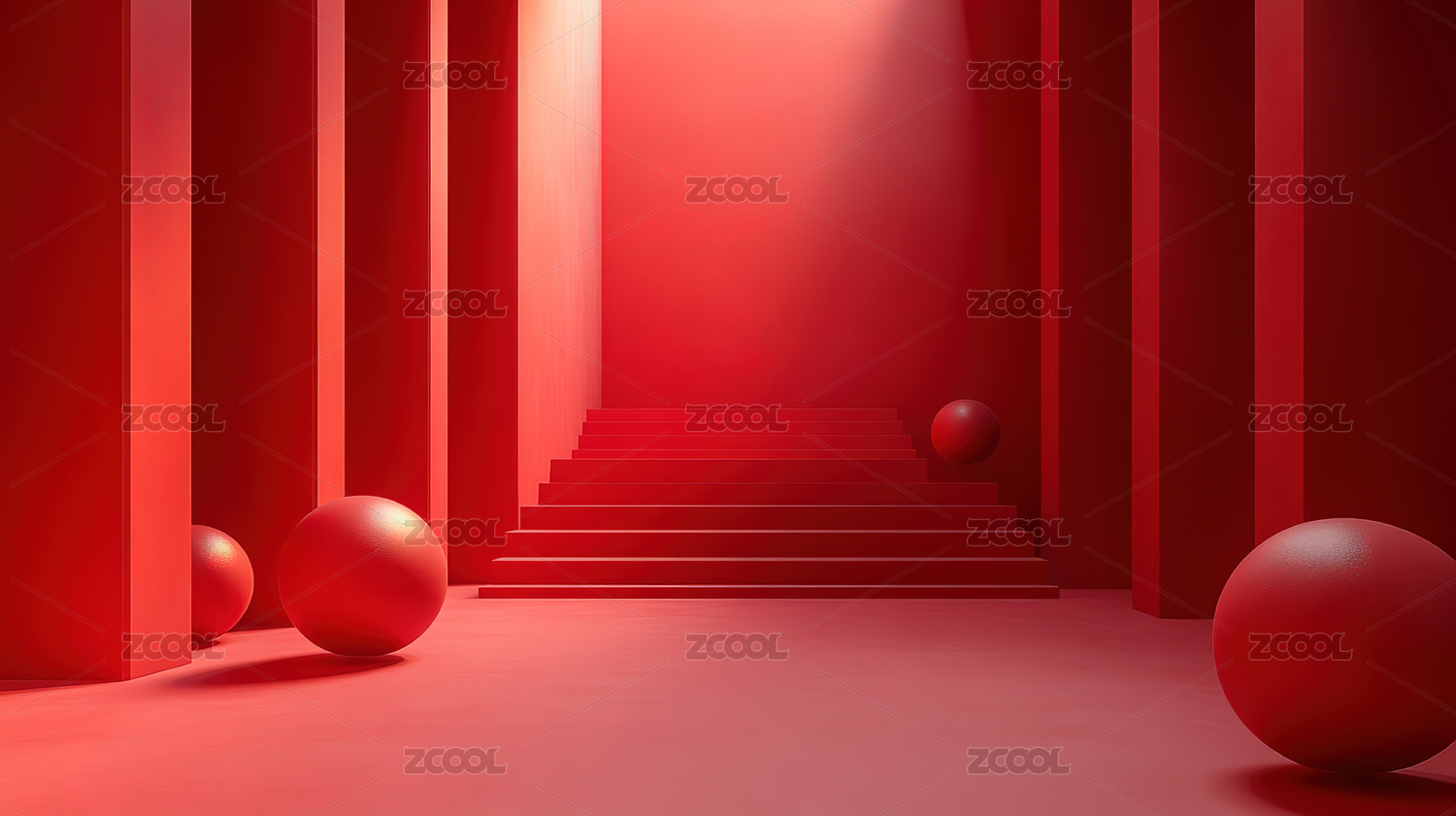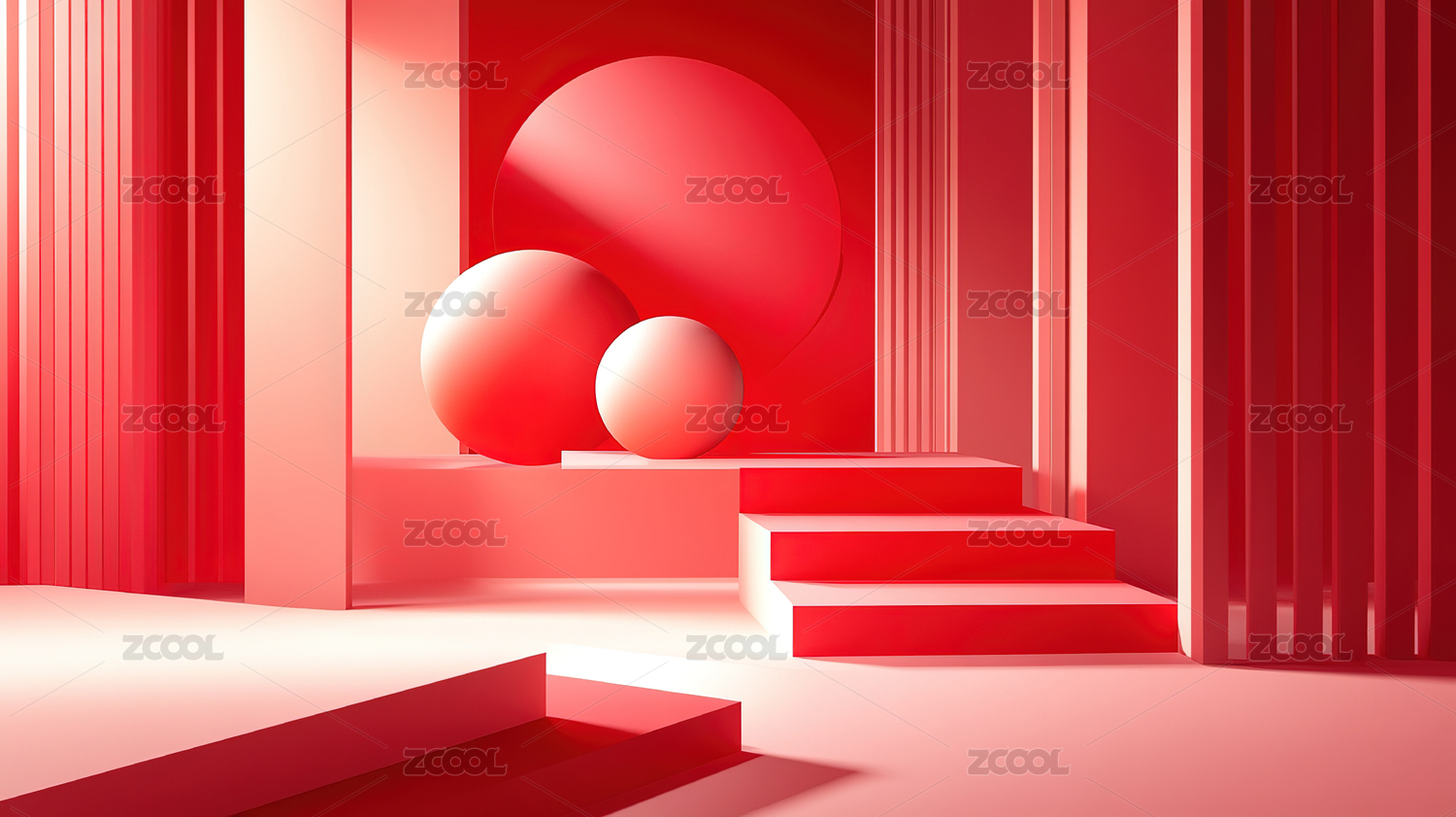 三维红色室内极简艺术展台背景