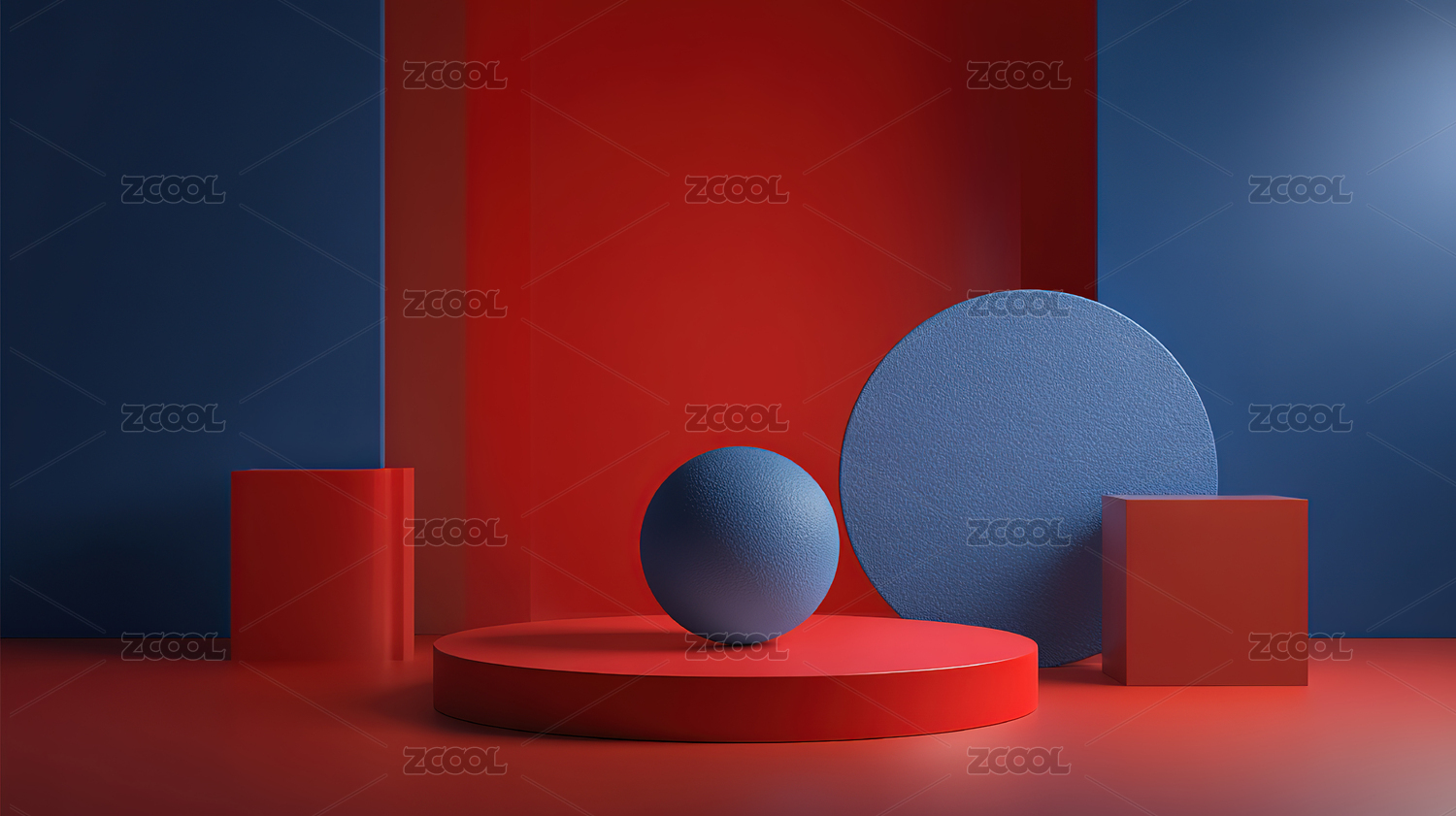 红蓝几何空间构图