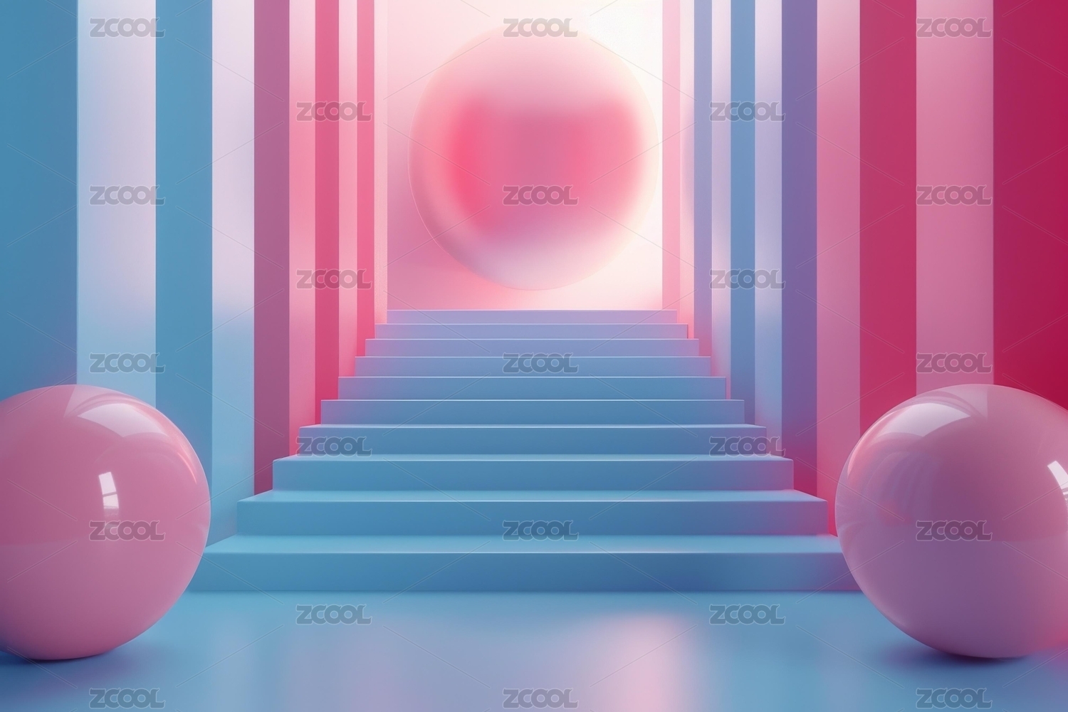 渲染的粉蓝色柔和色调的走廊