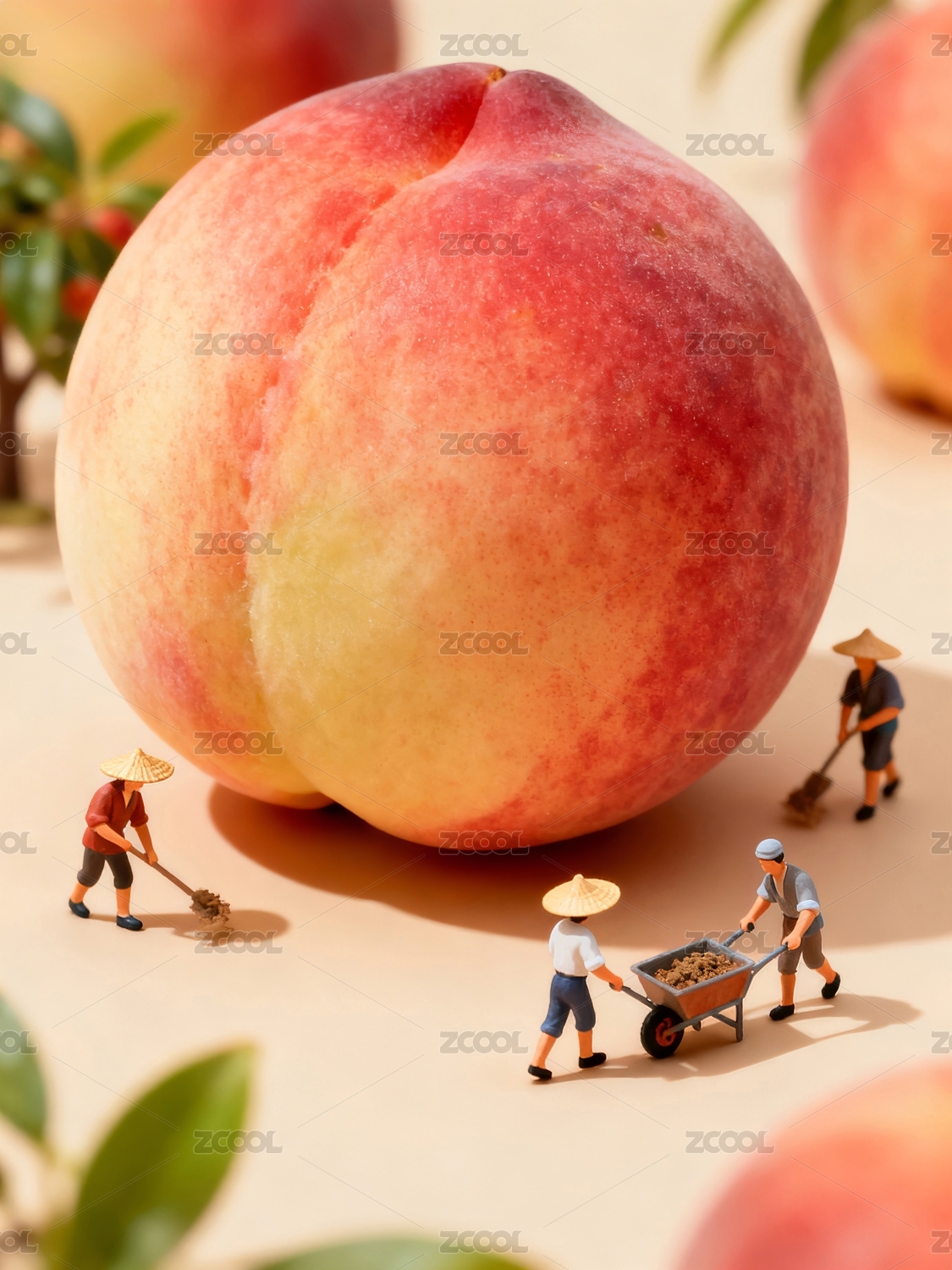 人物,劳作,农民,推车,绿色,黄色,田园,小人,微型,食物