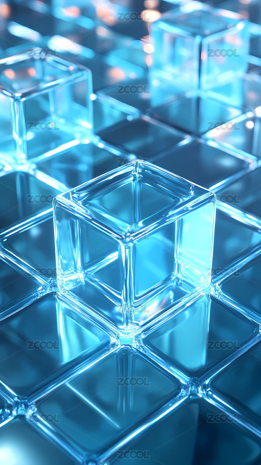 蓝绿色商务科技透明立方体方块玻璃背景壁纸