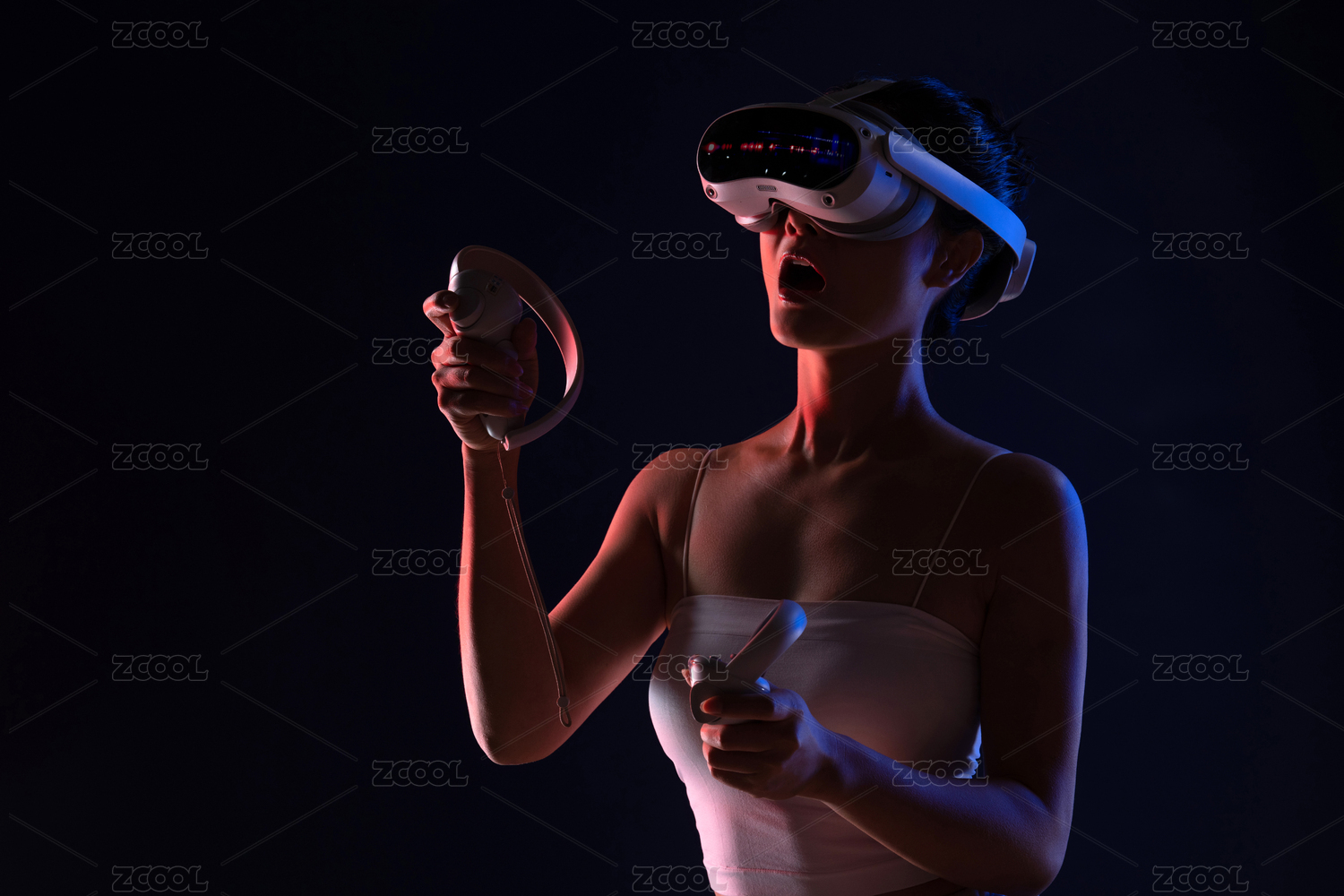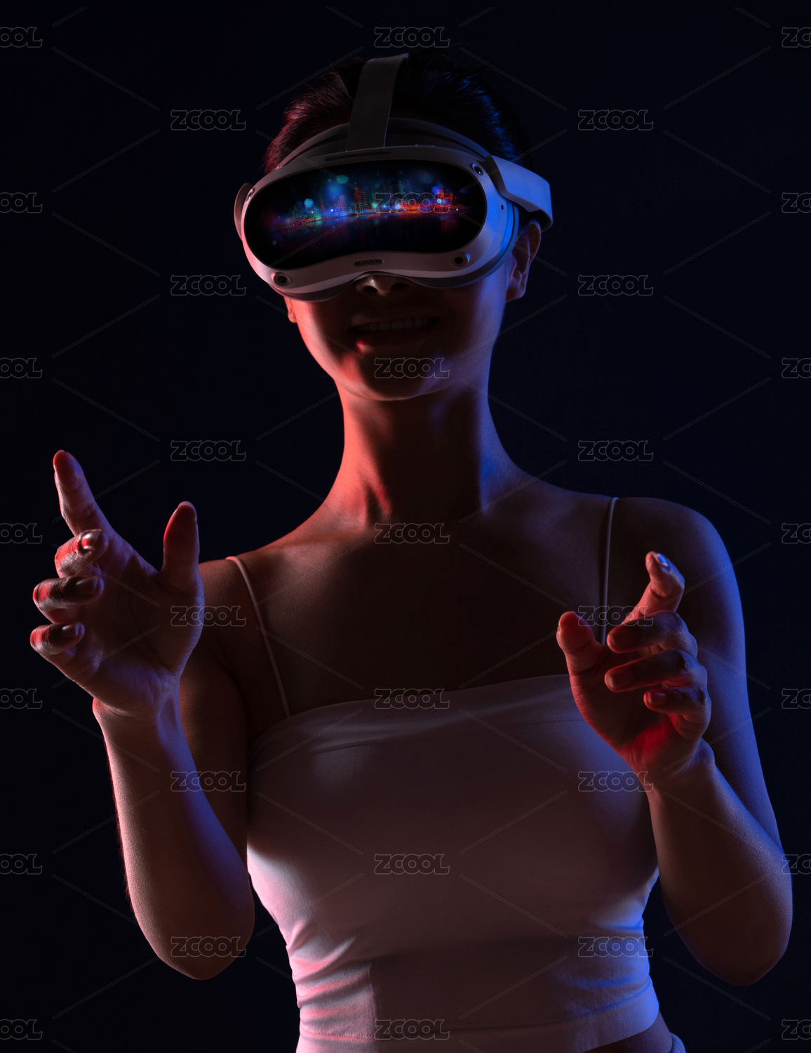 戴VR眼镜的青年女人