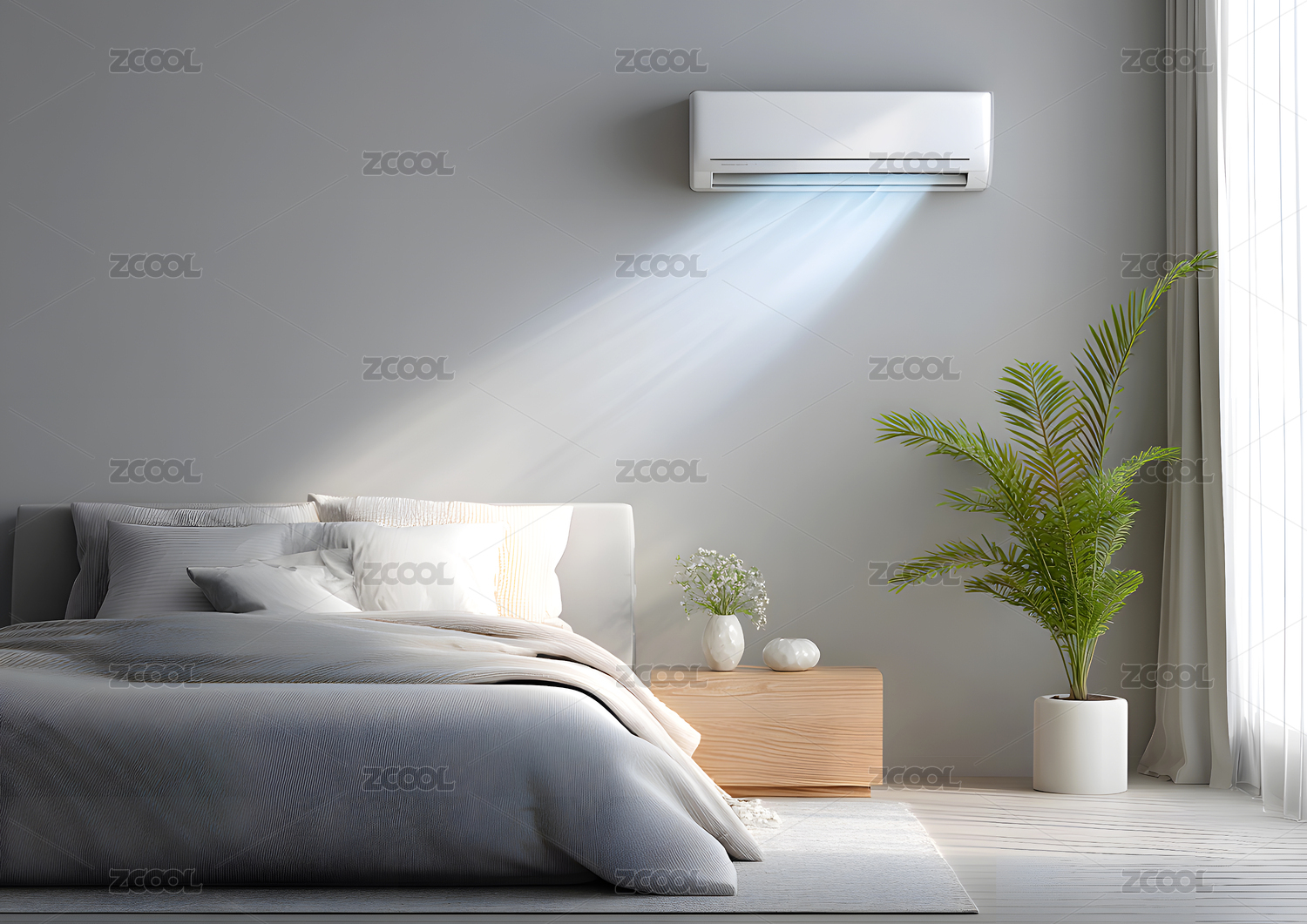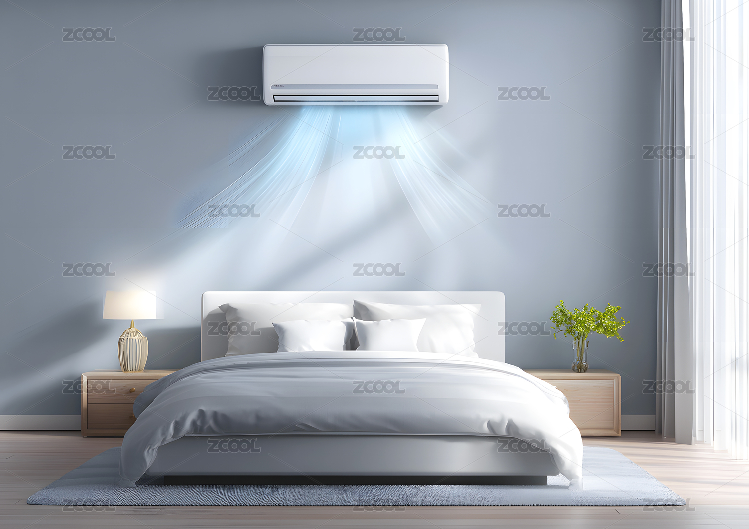 节能空调新风系统居家制冷吹风特效概念