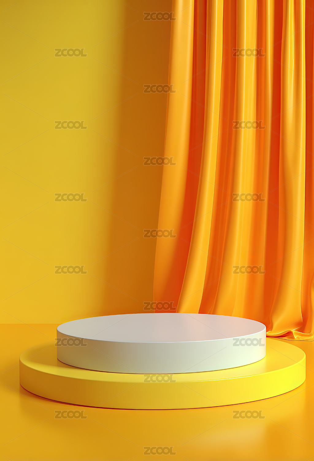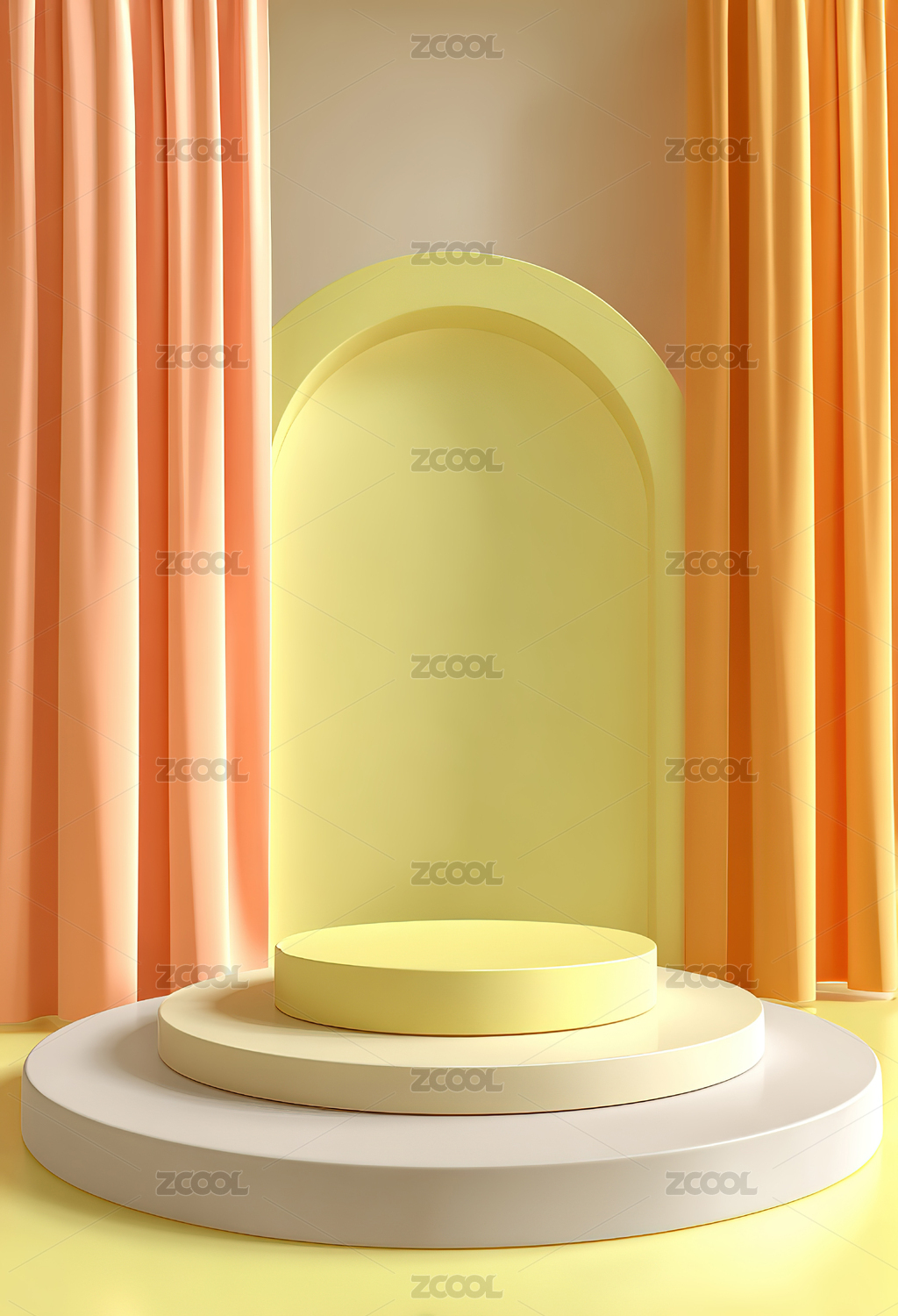 黄色帷幕背景的圆形展台