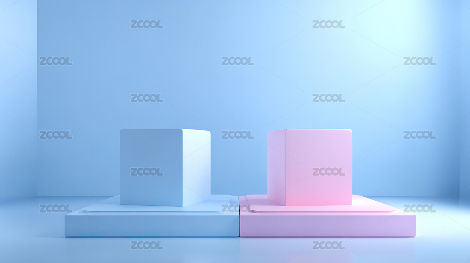 蓝粉几何立方体静物