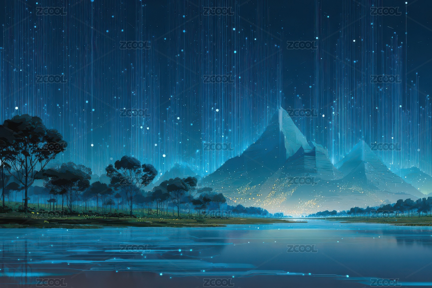 梦幻,自然,光影,倒影,夜景,山脉,远山,地平线,轮廓,星空
