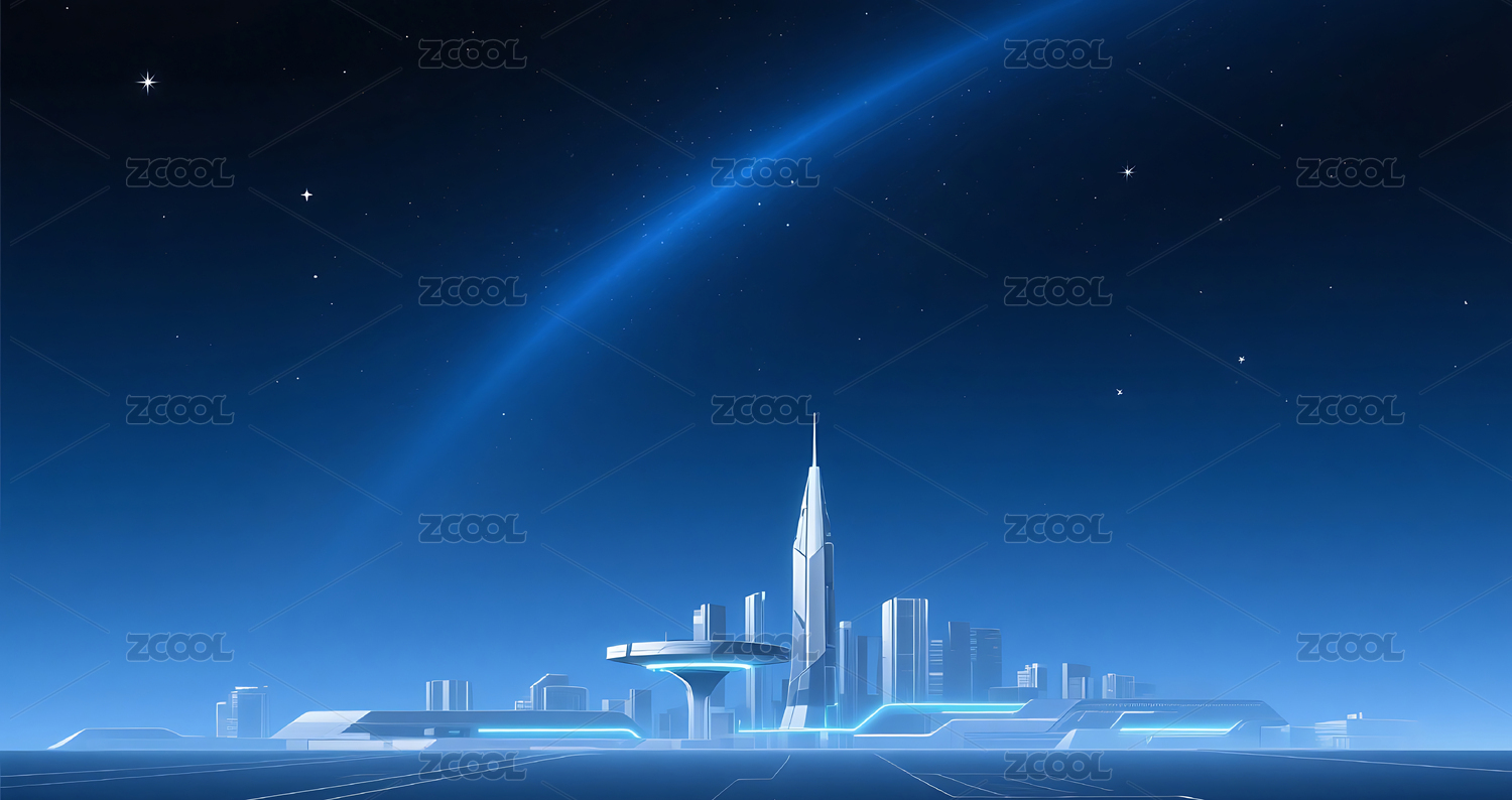 蓝色半透明玻璃几何未来科技城市建筑背景