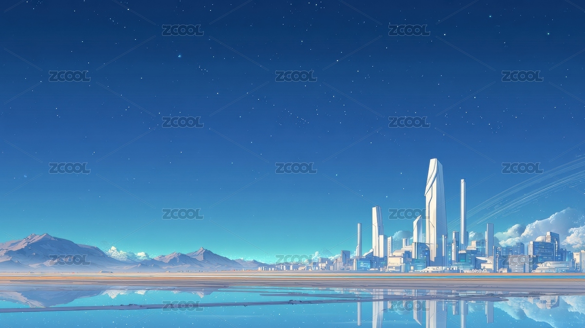 山脉,星空,蓝色,天空,自然,宁静,远景,广阔,视觉,倒影