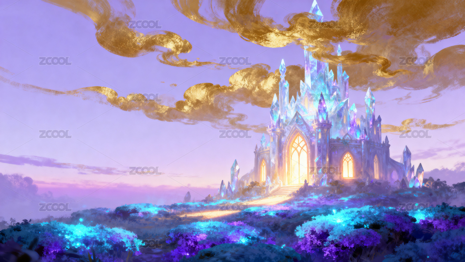 紫色梦幻城堡浪漫场景设定背景图