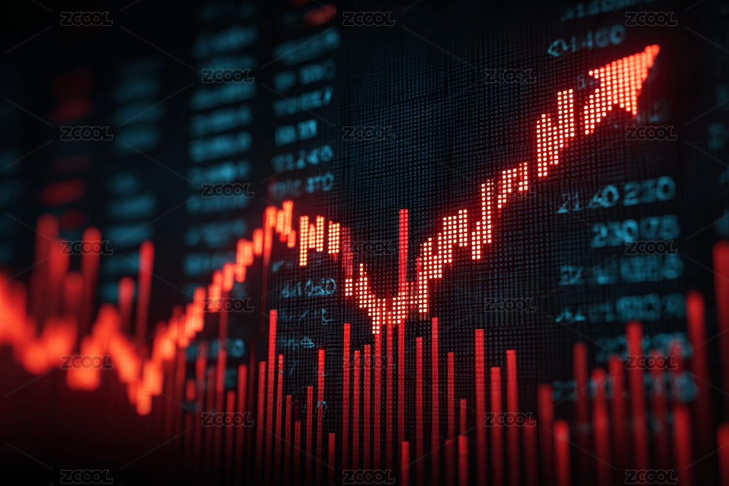 红色箭头柱图上升