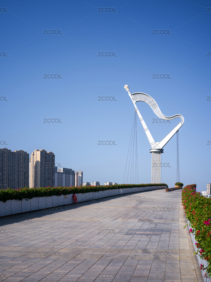 厦门园博苑都柏林竖琴纪念碑日出景色